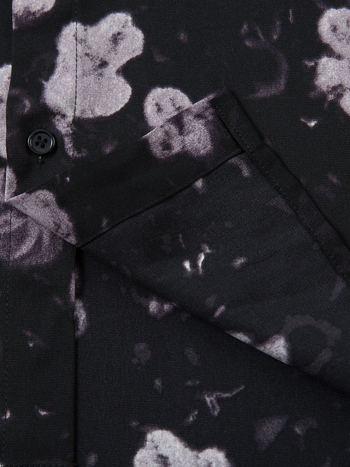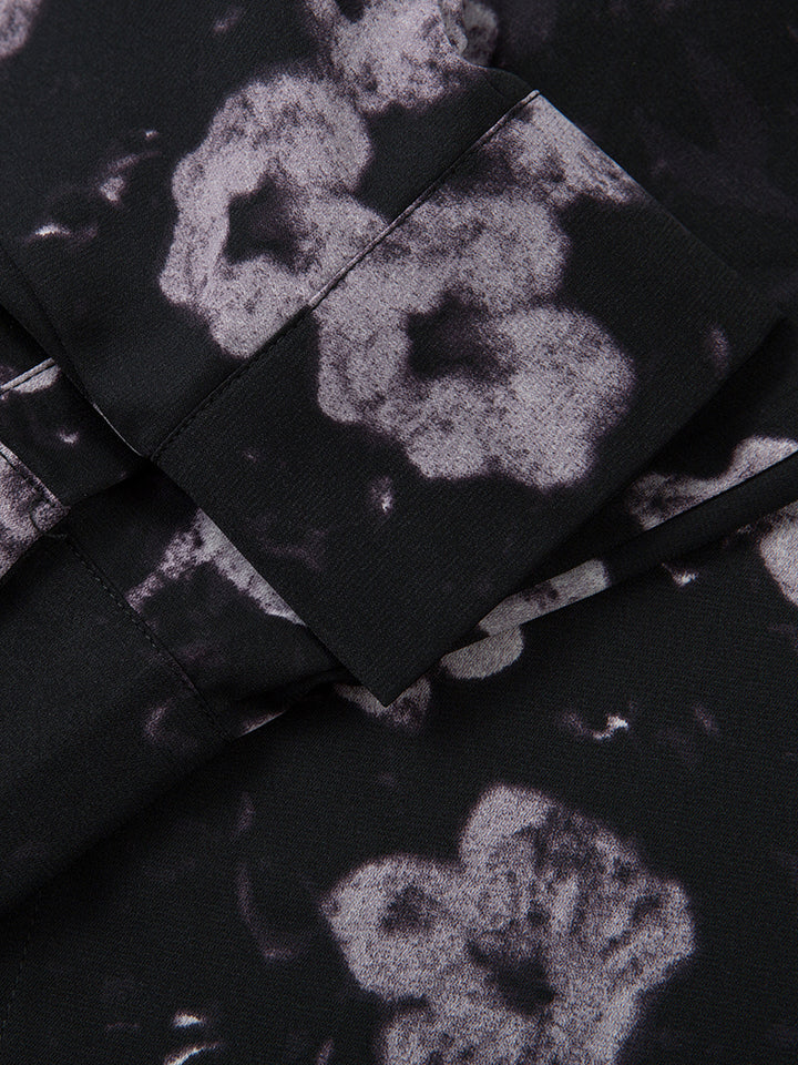 Refresh your style with this striking black long sleeve shirt, featuring a unique all-over floral print that blends abstract artistry with everyday wearability. Made from 100% polyester, the fabric is lightweight, breathable, and easy to maintain—ideal for both casual and semi-formal settings. The relaxed fit offers effortless comfort, making it perfect for layering or wearing on its own. Whether you're dressing up for an evening out or elevating your daily streetwear game, this shirt brings confidence and character to any outfit. Available in sizes M, L, XL, and XXL.