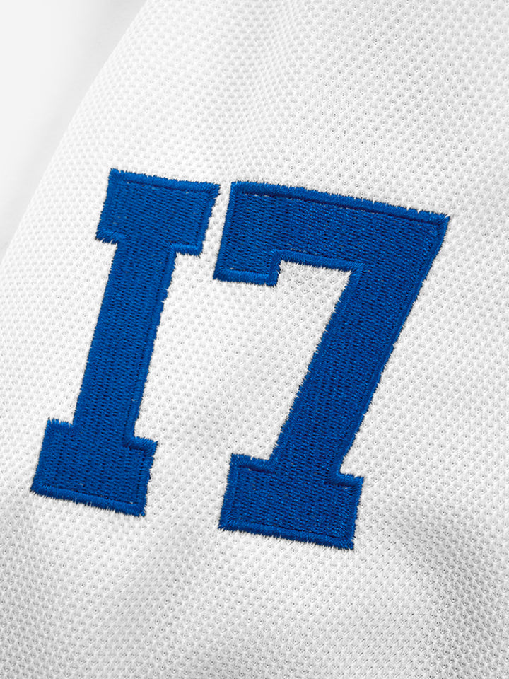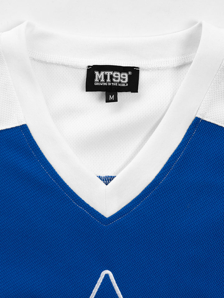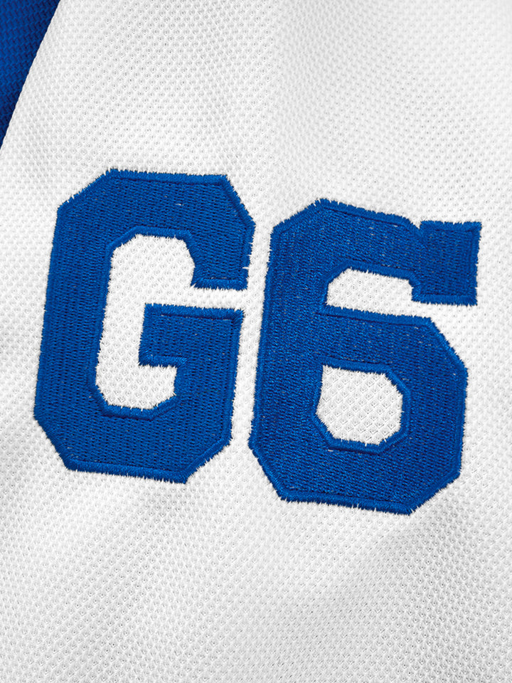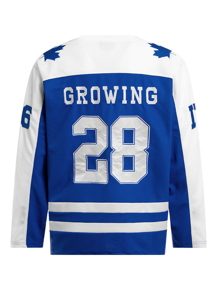 Step up your streetwear game with this ice hockey-inspired jersey top in bold blue and white color blocking. Featuring a leaf-themed chest graphic and athletic stripe detailing, this jersey captures the energy of vintage sportswear with a modern twist. Crafted from 100% polyester, it offers breathable comfort and durability for daily wear. The relaxed oversized fit makes it perfect for layering or wearing on its own. Available in sizes M to XL, it's a must-have for anyone who values bold style and comfort.
