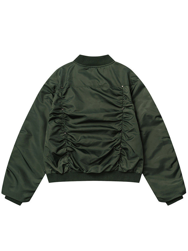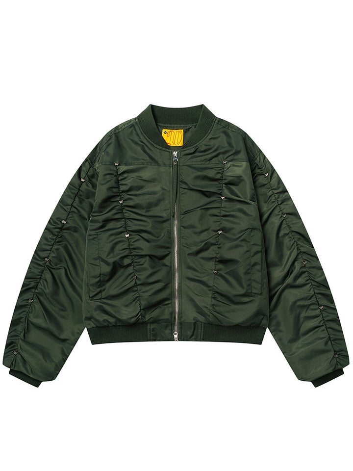 Upgrade your wardrobe with this versatile men’s bomber jacket, blending a modern ruched design with a relaxed, comfortable fit. Made from 100% polyester, it is lightweight, durable, and wind-resistant, making it perfect for year-round wear. The ribbed trims and zip-up closure highlight its classic bomber style, while the ruched detailing adds a unique twist for a streetwear-ready look. Available in three stylish colors—Black, Army Green, and Gray—and sizes M, L, and XL, this jacket pairs effortlessly with jeans, joggers, or your favorite casual pieces. A must-have staple for anyone seeking comfort and modern street style in one.
