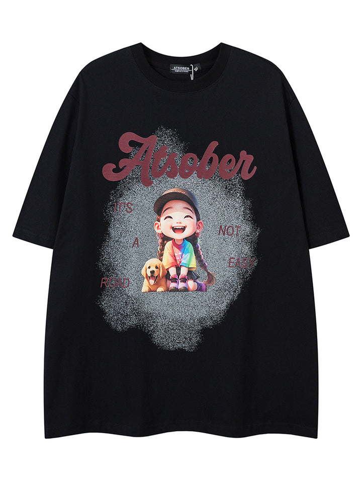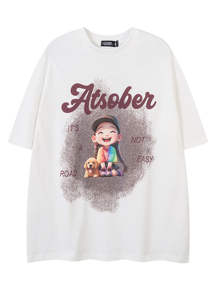 Add a touch of joy to your daily wardrobe with this unisex oversized T-shirt, featuring a delightful cartoon-style print of a happy girl and her dog. The eye-catching design is ideal for expressing carefree, youthful energy while staying comfortable. Its oversized fit pairs well with jeans, joggers, or shorts, making it an easy go-to for everyday wear, relaxed weekends, or streetwear-inspired outfits. Whether for yourself or as a gift, this tee brings both style and a smile.