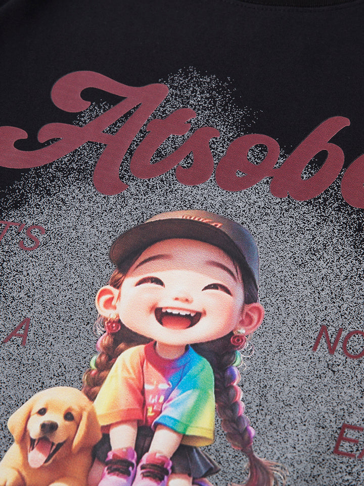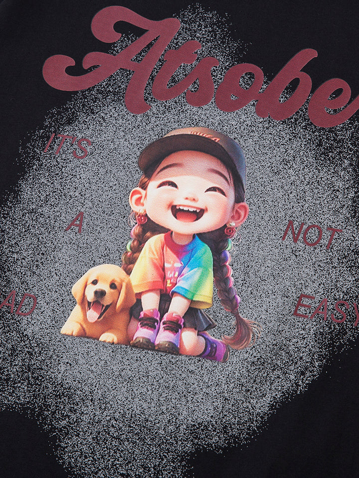 🎨 Charming Cartoon Print – Features a vibrant and heartwarming illustration of a smiling girl and her dog, perfect for expressing a playful and positive style.
