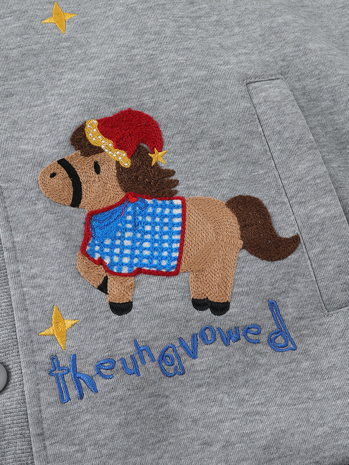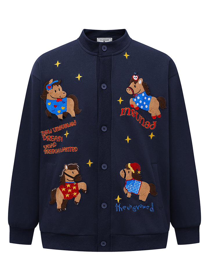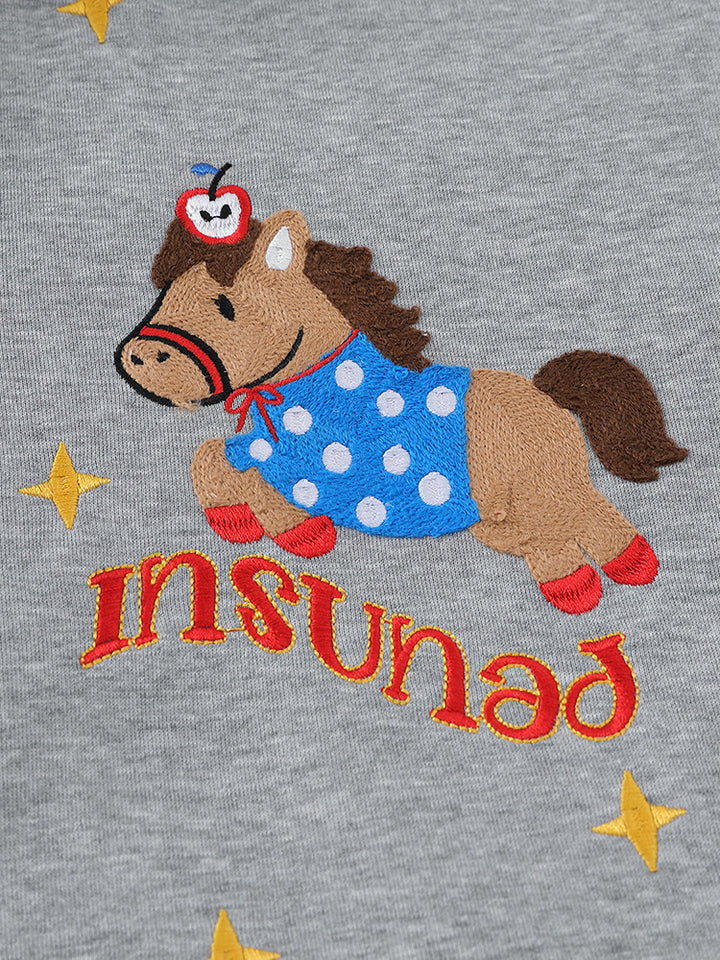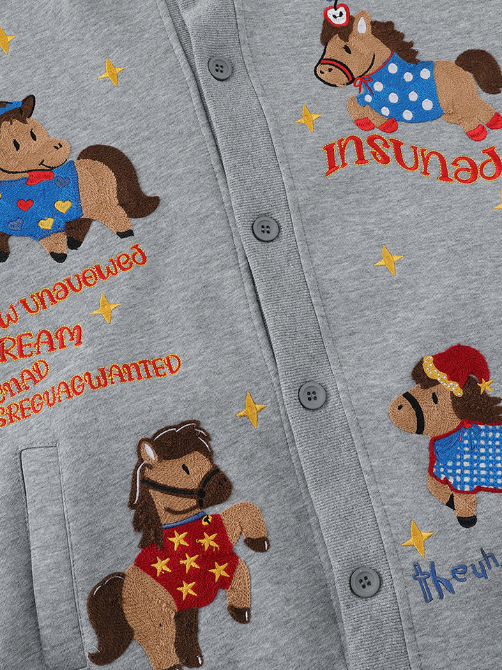 🐴 Playful Cartoon Horse Embroidery – Features cute horse characters in vibrant colors, adding fun and personality to your casual look.