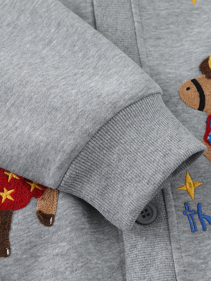Upgrade your casual wardrobe with this unique embroidered sweatshirt featuring adorable cartoon horse motifs. Designed in a relaxed fit with ribbed cuffs and hem, this sweatshirt combines comfort and playful style. Made from a cotton-polyester blend with a smooth polyester lining, it is breathable, soft, and suitable for everyday wear in any season. Available in heather gray and navy blue, this versatile sweatshirt is perfect for casual outings, lounging, or pairing with your favorite streetwear pieces. A fun and stylish choice for those who love creative fashion, and a thoughtful gift idea for friends and family.