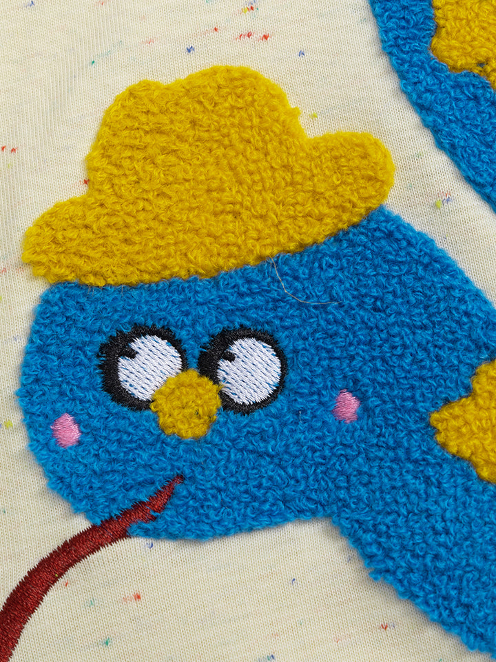 🧵 Unique Chenille Embroidery – Features an adorable chenille-stitched cartoon snake for a textured and eye-catching look.