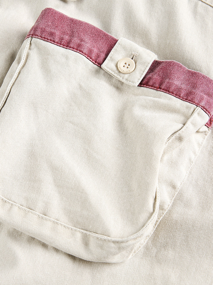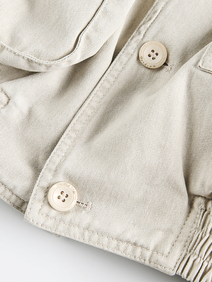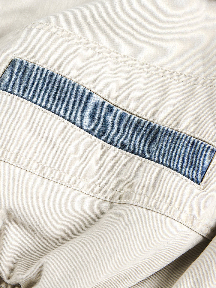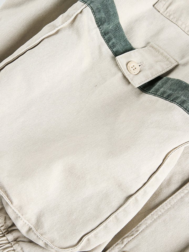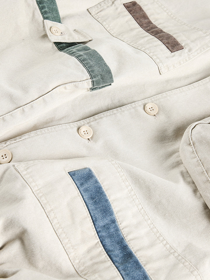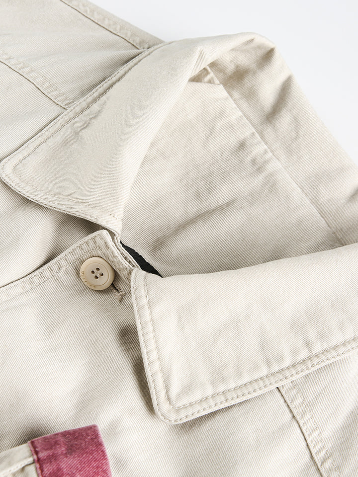 Refresh your outerwear collection with this color block multi-pocket cropped utility jacket in a soft beige tone. Designed with contrasting patchwork pocket details, it offers a playful yet practical twist on classic workwear. Made from 100% breathable cotton, this jacket provides comfort and durability for everyday wear. The relaxed fit and cropped cut make it easy to pair with jeans, cargo pants, or skirts, while the functional multi-pocket design keeps your essentials close at hand. Perfect for streetwear lovers, casual style enthusiasts, or anyone looking to add a creative layer to their wardrobe.