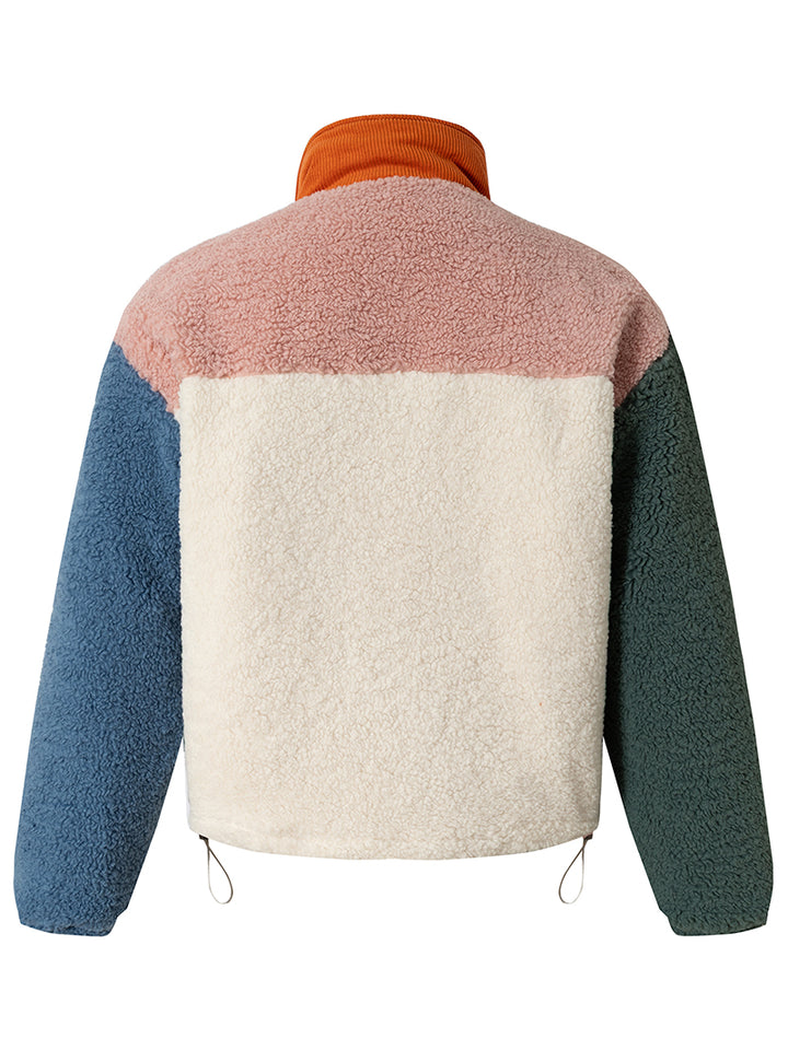 Stay cozy and on-trend with this women’s color block sherpa fleece jacket. Designed with a stylish stand collar and quilted cotton lining, it provides excellent warmth without compromising comfort. The vibrant patchwork color design brings a playful yet modern edge, perfect for pairing with jeans, leggings, or joggers. Whether you’re heading out for a walk, running errands, or enjoying a weekend getaway, this soft and padded sherpa jacket keeps you warm and effortlessly chic. Available in sizes M–XXL, this jacket is a must-have addition to any cold-weather wardrobe.