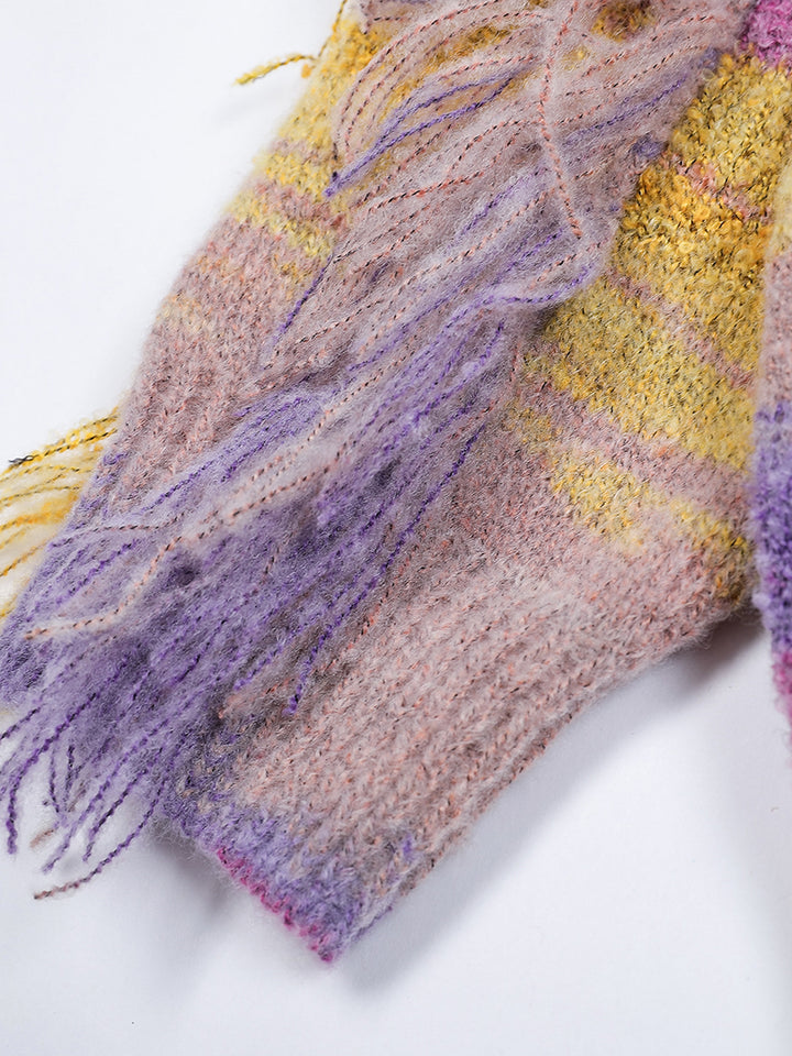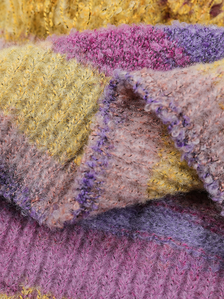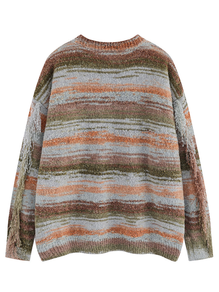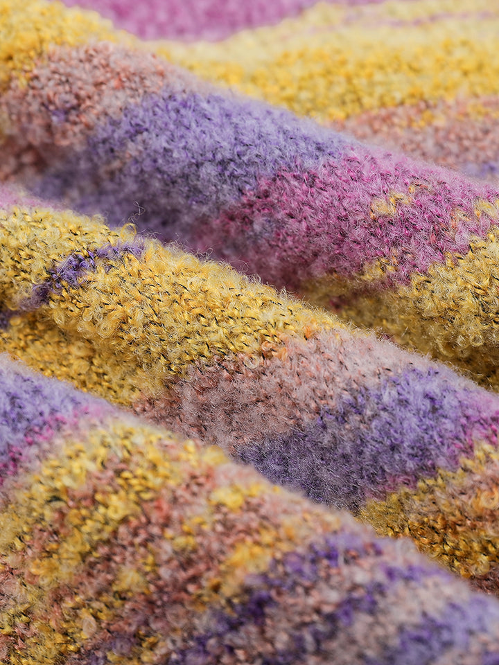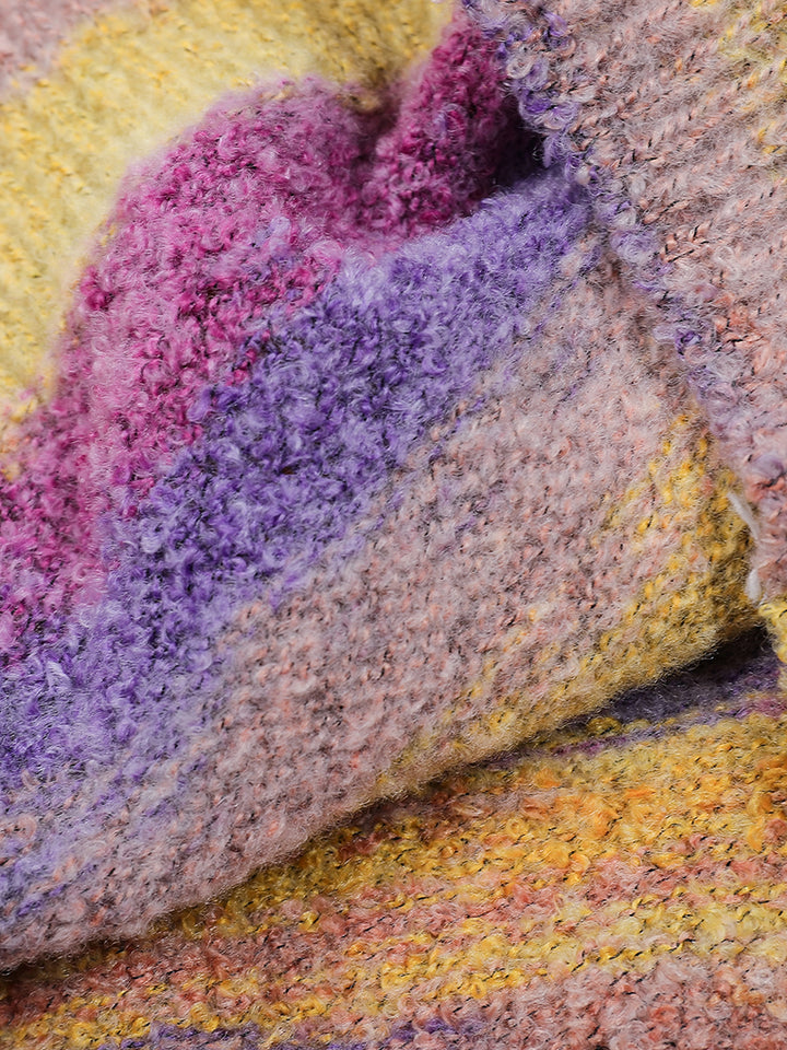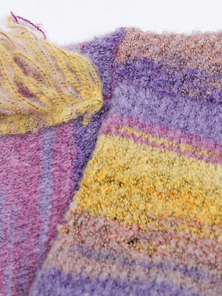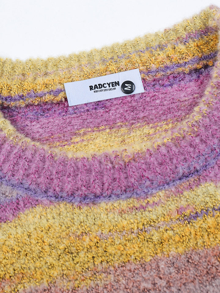 🌈 Gradient Stripe Pattern – Softly blended multicolor yarns give the sweater a dreamy, artistic flair, perfect for casual layering.