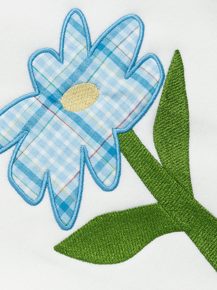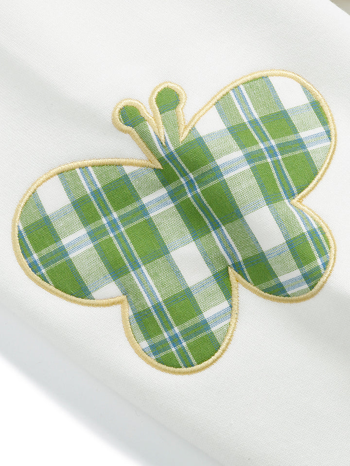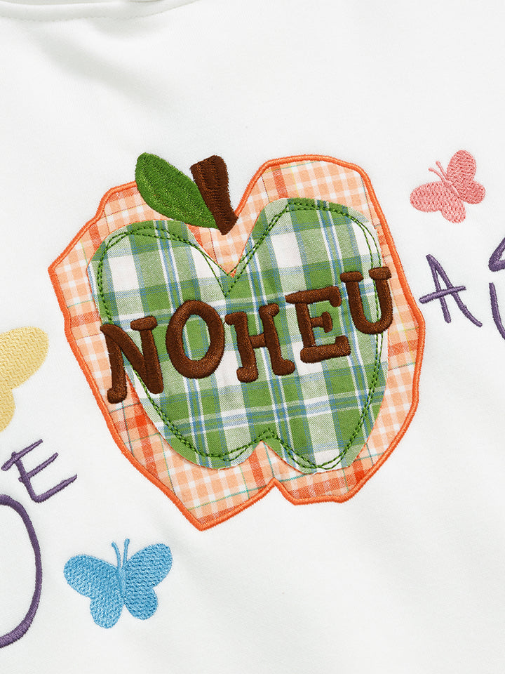 🍎 Playful Embroidered Design – Features vibrant embroidered apples, flowers, and butterflies that bring a cheerful, creative touch to your outfit.