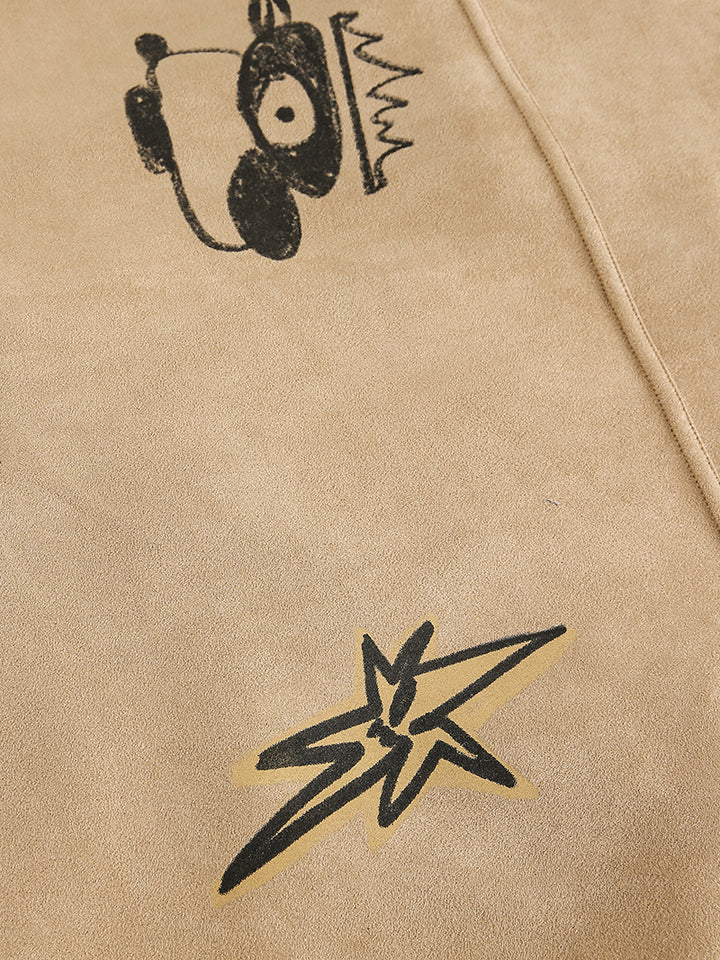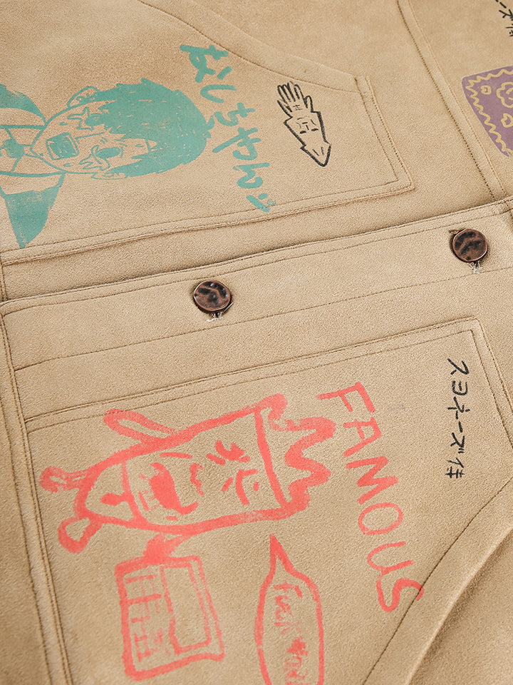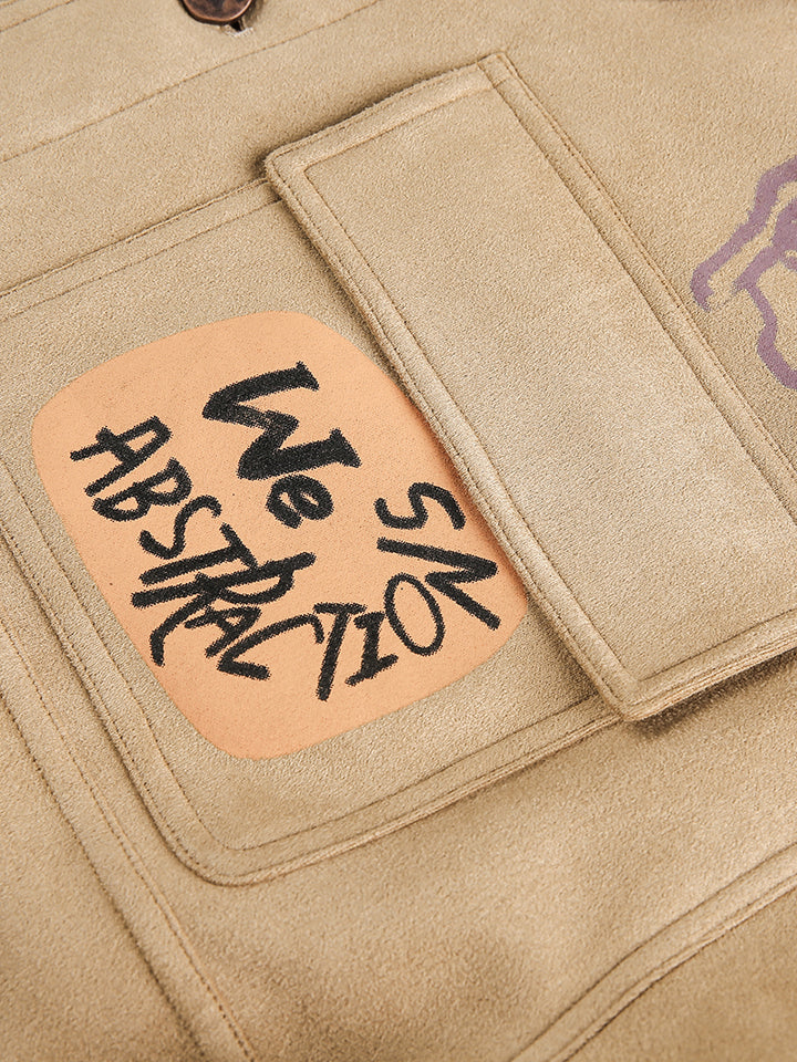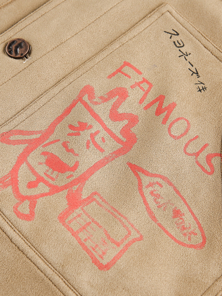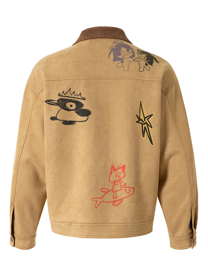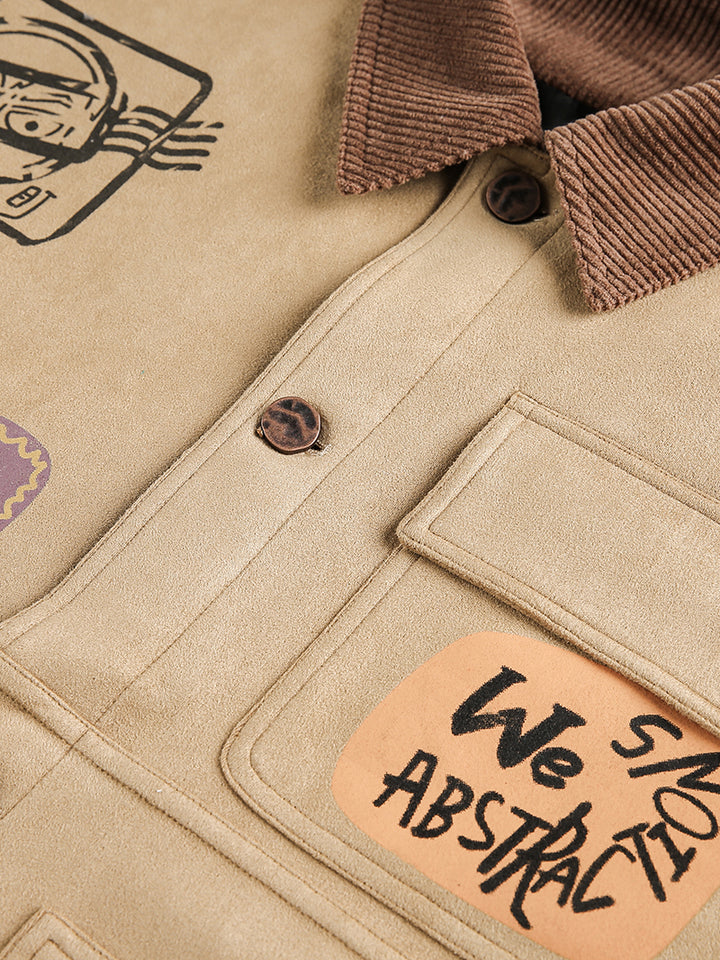 Refresh your casual wardrobe with this graffiti-inspired workwear jacket. Designed with a contrasting corduroy collar and decorated with playful, abstract prints, it blends street style with a creative edge. The coffee-colored fabric ensures easy pairing with jeans, cargo pants, or sneakers, while the relaxed fit offers comfort for everyday wear. Crafted from a durable blend of polyester, spandex, cotton, and viscose, this jacket combines softness, flexibility, and breathability—perfect for all-day wear. Whether for casual outings, layering in cooler weather, or making a bold fashion statement, this jacket is a versatile piece for any modern wardrobe.