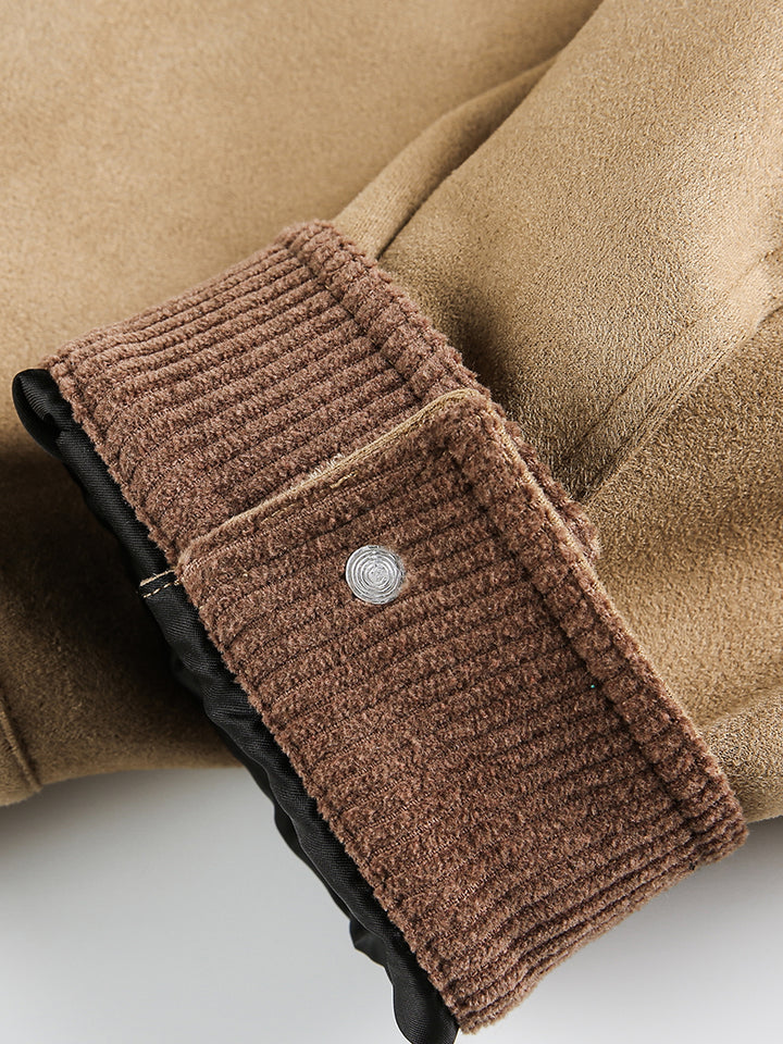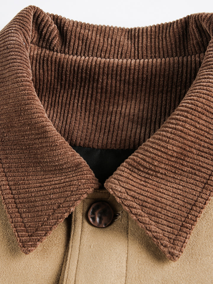 👔 Corduroy Patch Collar – Contrast corduroy collar adds texture and a retro-inspired touch to the workwear silhouette.