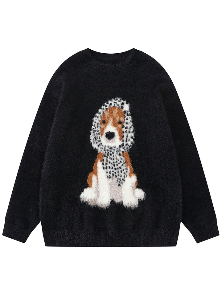Add a touch of fun to your winter wardrobe with this charming dog graphic sweater. Featuring a fluffy puppy design on a soft knit fabric, this pullover combines comfort with casual streetwear style. The relaxed fit makes it perfect for layering over shirts or wearing on its own for a cozy, laid-back vibe. Available in classic solid tones, it pairs effortlessly with jeans, skirts, or joggers. Whether you’re lounging at home, heading out with friends, or looking for the perfect gift for a pet enthusiast, this sweater brings warmth, comfort, and playful personality to any outfit.