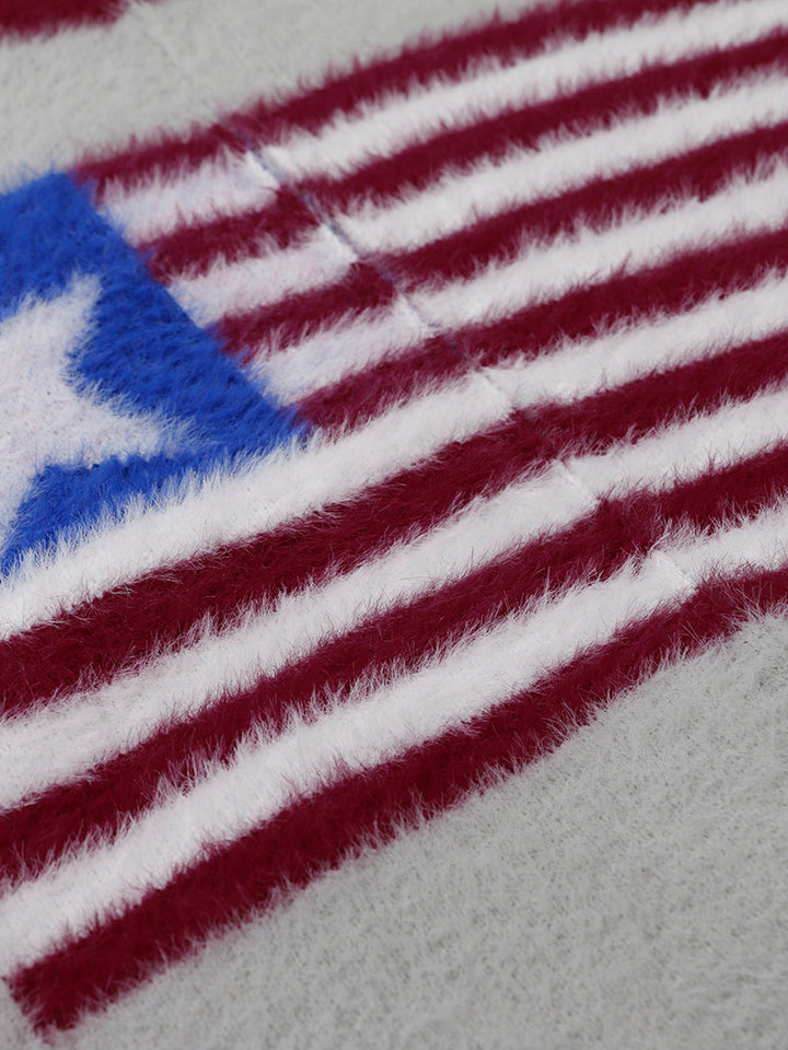Upgrade your wardrobe with this cozy fleece sweater featuring a retro-inspired star and stripe pattern. Designed with a relaxed oversized fit, it offers both style and comfort, making it perfect for layering or wearing on its own. The fabric blend of polyester, acrylic, nylon, and PBT provides warmth, softness, and lasting durability. Available in sizes M, L, and XL, this pullover is a versatile option for everyday wear, whether you’re heading out for casual outings, staying warm indoors, or completing a streetwear look. A must-have addition for fashion-forward individuals who value both comfort and statement style.