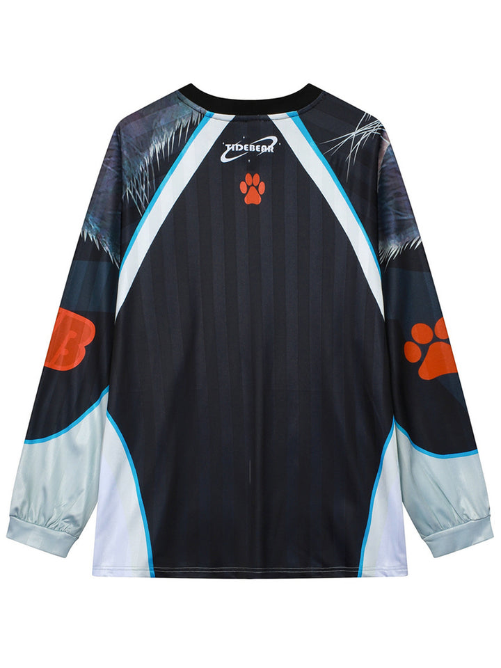 Elevate your casual style with this standout long-sleeve T-shirt showcasing a realistic cat graphic on the front. The combination of vivid colors and contrast sleeve panels adds a street-style edge that’s both bold and comfortable. Designed in a relaxed oversized fit, it pairs perfectly with jeans, joggers, or layered outfits for any season. Crafted from a soft and breathable fabric, this piece ensures ease of movement and everyday comfort. A must-have for anyone who loves expressive and creative fashion with a playful twist.