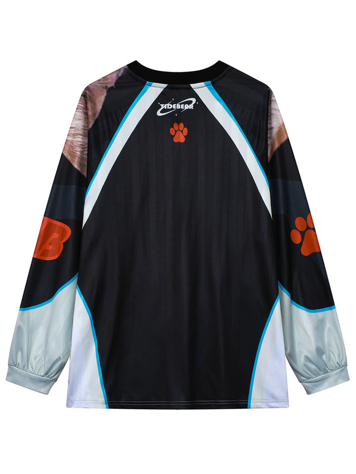 Stand out from the crowd with this bold long-sleeve streetwear shirt featuring a vivid, life-like cat print. Designed with a relaxed oversized fit, it blends comfort and urban style effortlessly. The color-block detailing and modern graphics give it a sporty yet artistic flair. Crafted from lightweight, breathable fabric, it’s perfect for casual outings, lounging, or pairing with your favorite streetwear pieces. A must-have for fashion-forward individuals and cat enthusiasts alike, this shirt brings fun energy and creativity to any outfit.