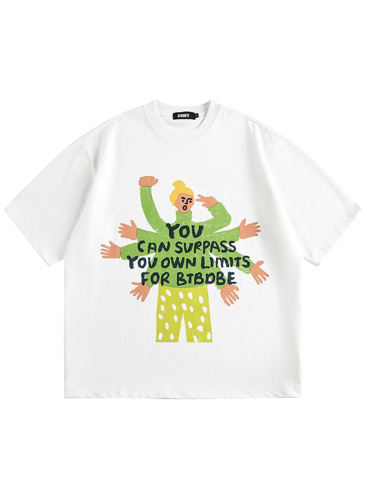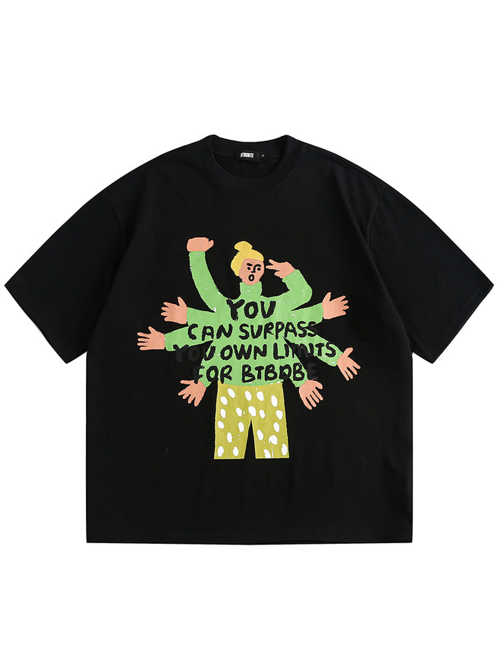 Make a bold statement with this standout oversized T-shirt, featuring an imaginative cartoon-style graphic that brings a playful twist to your everyday wardrobe. The relaxed fit offers comfort and a modern silhouette, ideal for lounging, streetwear layering, or daily wear. Crafted from soft and breathable cotton, this tee blends artful expression with casual ease—perfect for anyone who loves fun fashion with a creative edge.