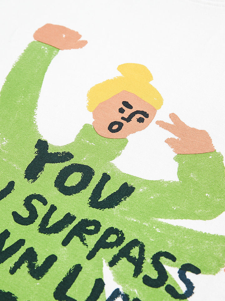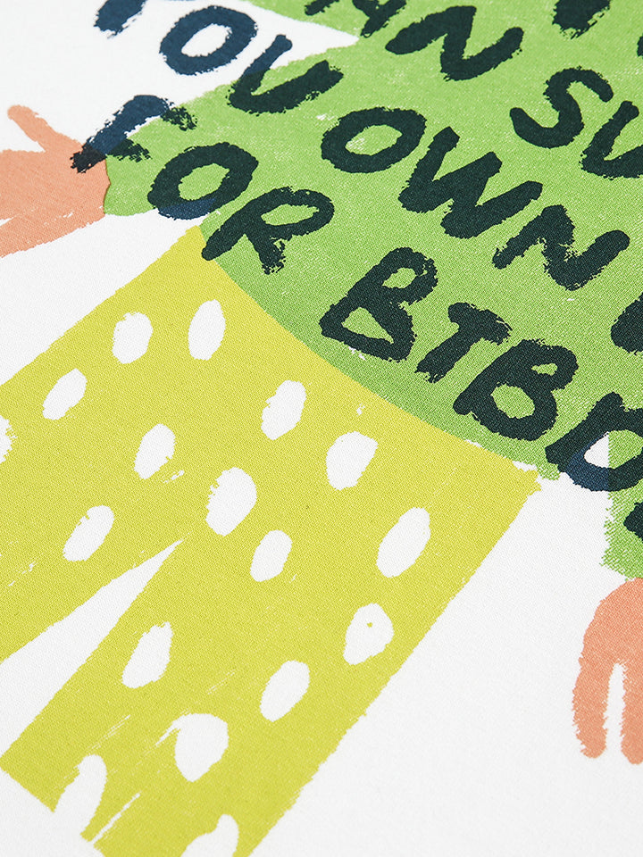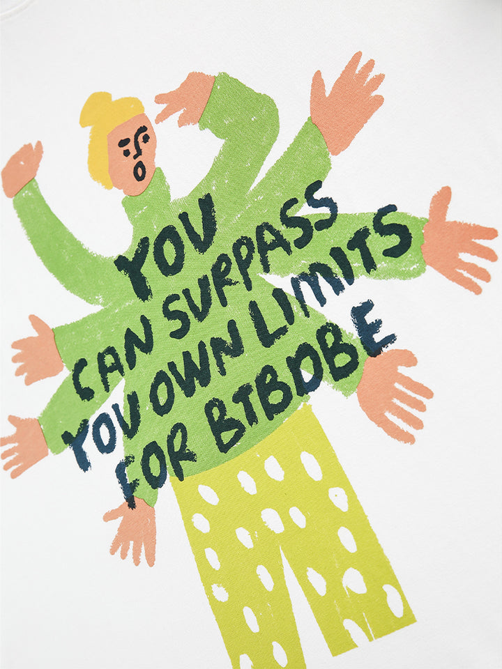 🎨 Playful Artistic Print – Features a unique hand-drawn-style cartoon character with multiple arms, adding a fun and quirky touch to your outfit.