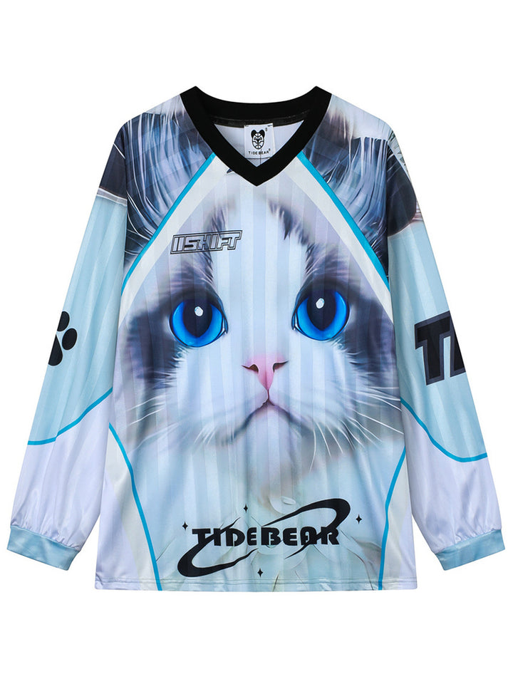 🐱 Adorable Cat Graphic – Features a lifelike blue-eyed cat print that adds a fun, eye-catching, and expressive touch to your outfit.