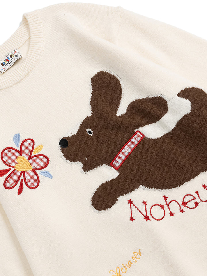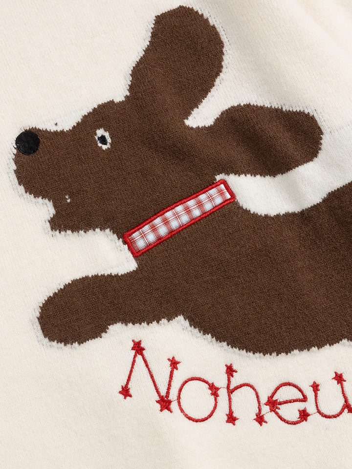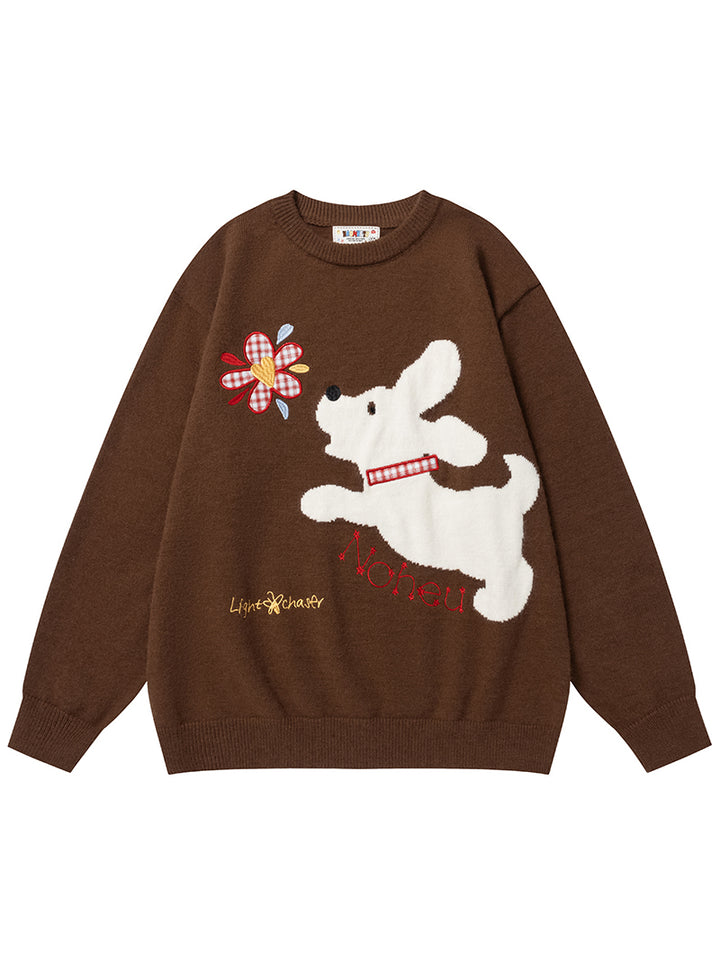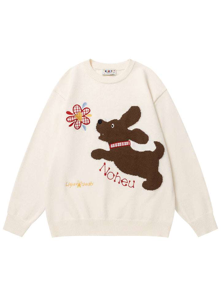 Elevate your cozy wardrobe with this adorable oversized sweater featuring a fun dog-themed graphic and vibrant color accents. Designed in a relaxed silhouette, it’s perfect for layering or wearing on its own for a laid-back, street-chic look. Crafted from a premium knit blend of anti-pilling acrylic, nylon, and PBT, this sweater offers lasting softness, flexibility, and shape retention. Whether you're dressing for a casual day out or lounging in comfort, this pullover adds a touch of joy and charm to any outfit.