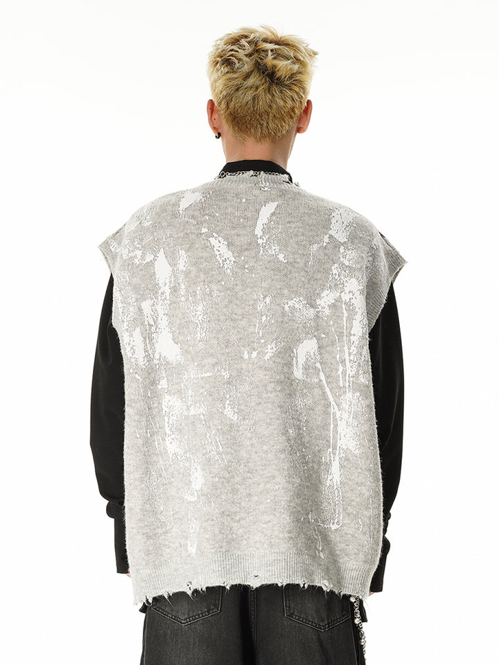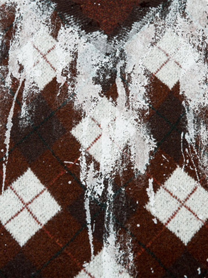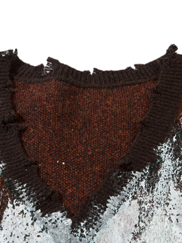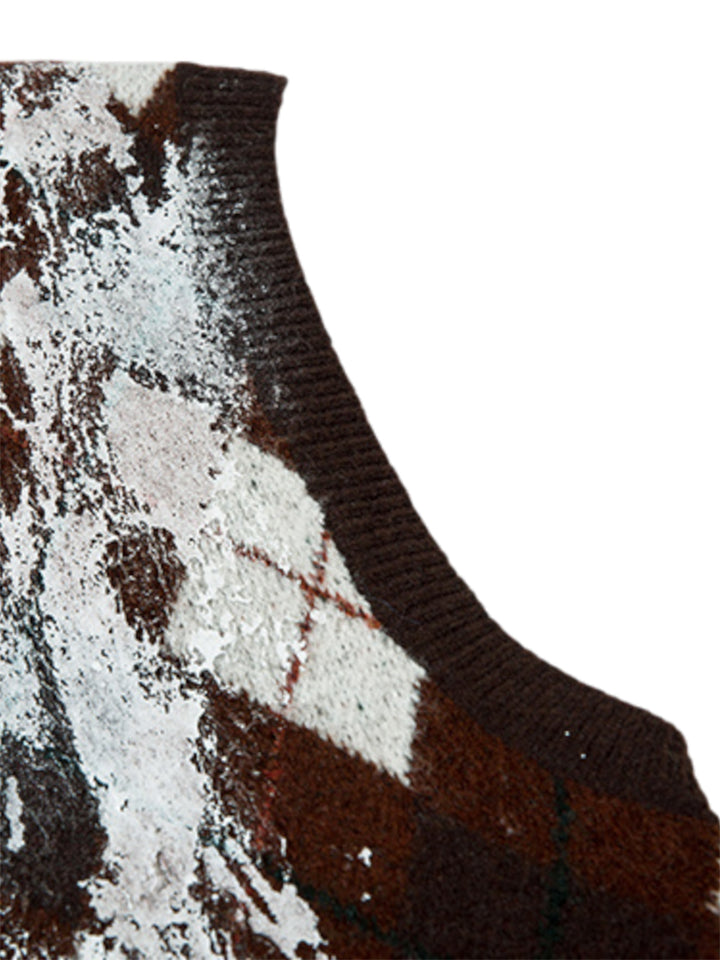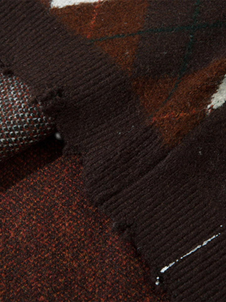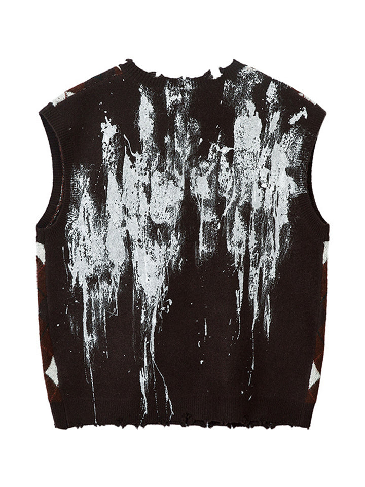 Distressed Argyle Knitted Vest - Casual Sleeveless Pullover Sweaters