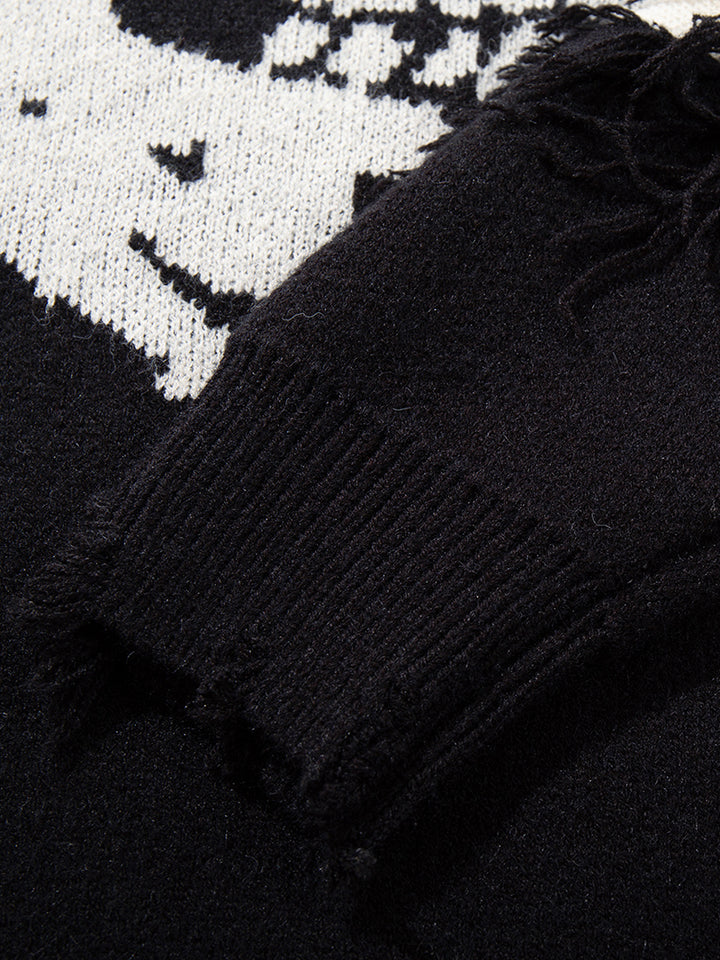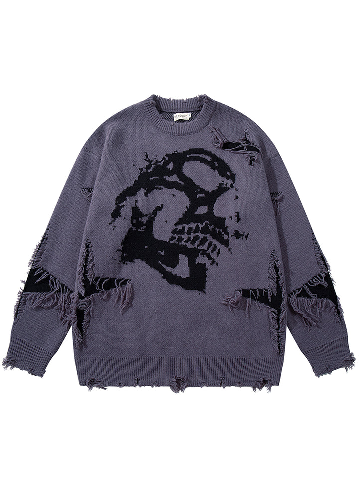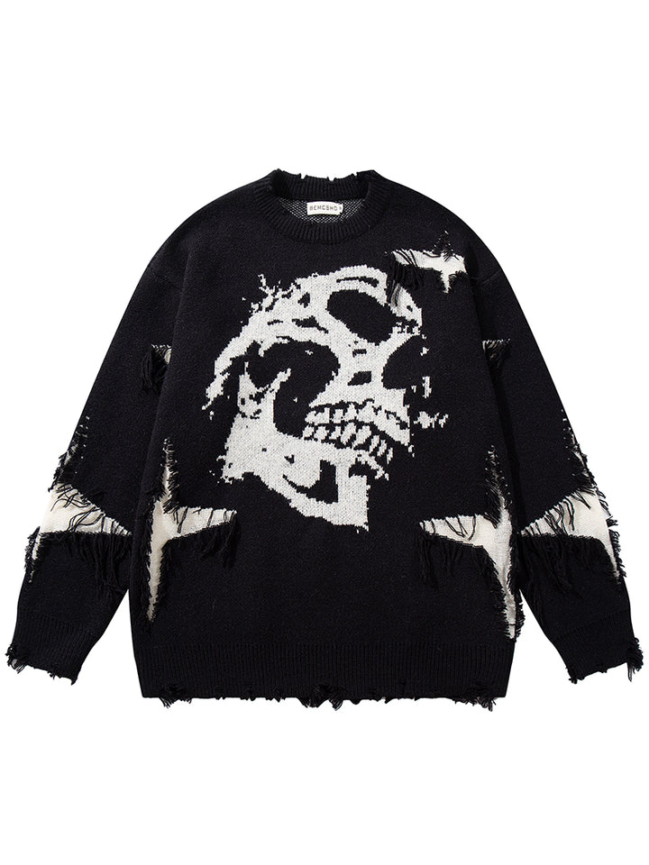 Elevate your streetwear collection with this standout oversized sweater, designed with a bold skull graphic and distinctive distressed details for a grunge-inspired look. The relaxed fit ensures all-day comfort, while the soft knit fabric keeps you cozy in cooler weather. Perfect for layering with jeans, cargo pants, or your favorite sneakers, this pullover blends edgy fashion with everyday wearability. A stylish gift for anyone who enjoys unique, statement-making fashion pieces.