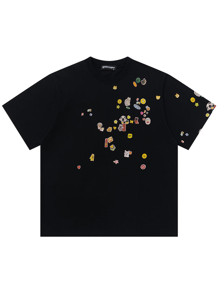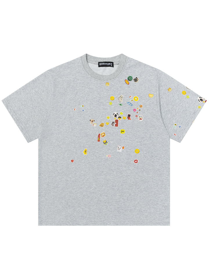 Elevate your casual wardrobe with this oversized graphic T-shirt featuring playful dog-themed illustrations and colorful mini icons. Crafted from a premium cotton-poly blend, this tee uses a 250g 32s plain-knit fabric that feels cool to the touch and remains comfortable throughout the day. Available in Black and Heather Grey, it’s perfect for unisex styling and comes in sizes S through XL. Whether you’re out and about or relaxing at home, this fun and eye-catching tee is an ideal choice for comfort and personality.