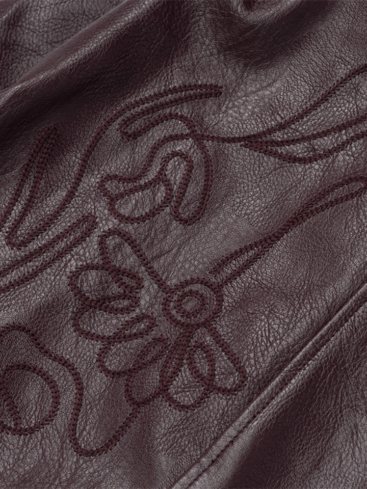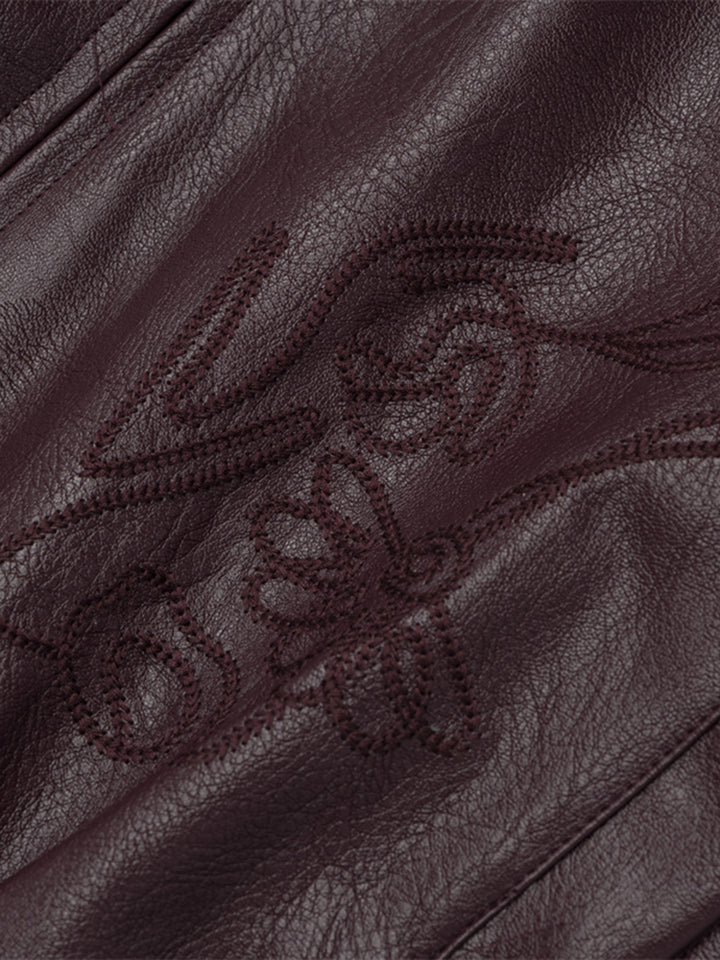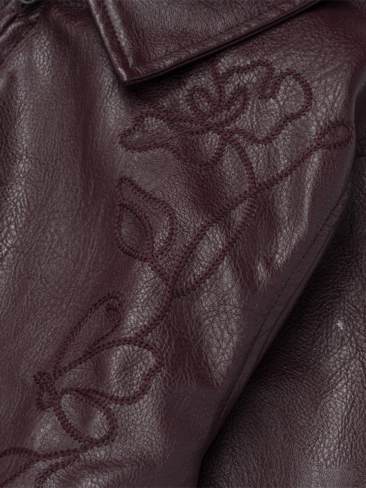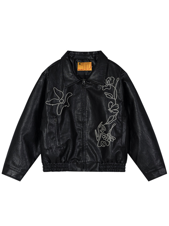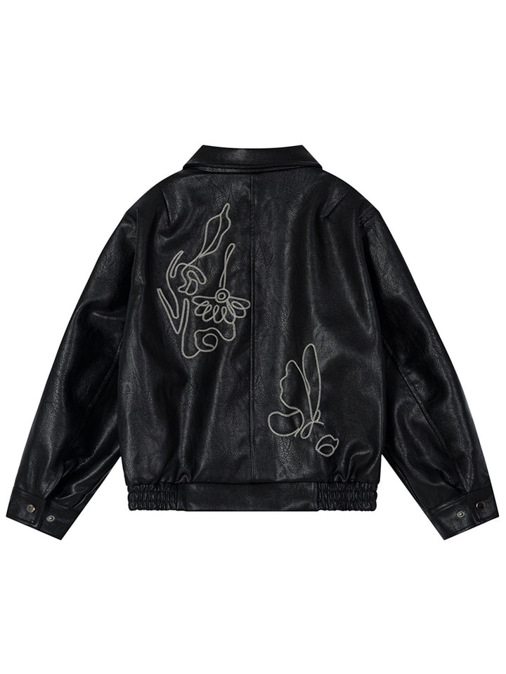 Upgrade your streetwear collection with this standout embroidered faux leather jacket, designed with artistic floral and animal line art details that add individuality to your look. The relaxed fit, elastic hem, and zip-up front create a timeless silhouette that pairs effortlessly with jeans, cargos, or layered over hoodies. Crafted from premium PU leather with a smooth lining, this jacket delivers style and comfort for year-round wear. Whether you’re heading to a casual outing, a night in the city, or simply want a statement piece, this embroidered faux leather jacket is a versatile addition to any modern wardrobe.