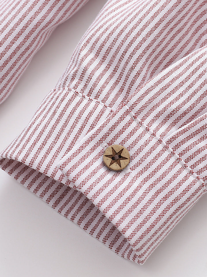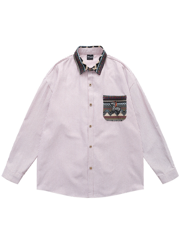 Refresh your wardrobe with this oversized striped shirt that blends comfort with creativity. Featuring an embroidered zebra patch pocket and a patterned contrast collar, this shirt adds a stylish twist to the classic button-down. The relaxed oversized fit makes it ideal for everyday wear, whether at work, lounging, or pairing with your favorite streetwear pieces. Crafted from a soft and breathable cotton-polyester blend (65% cotton, 35% polyester), it ensures comfort while maintaining shape and durability. Available in Blue and Red, sizes M–XL, this standout shirt is a versatile addition to any fashion-forward collection.