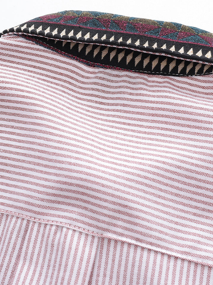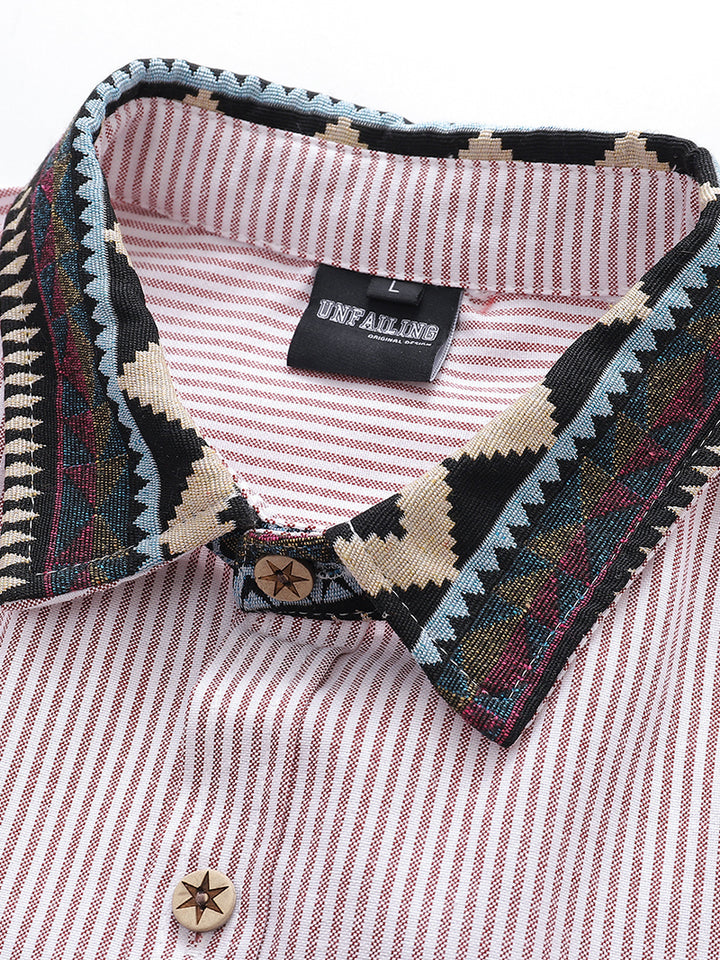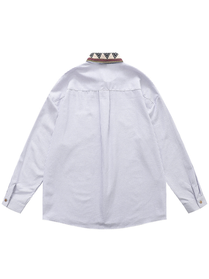 🎨 Contrast Collar Design – Bold patterned collar detail elevates the striped base, perfect for modern streetwear styling.