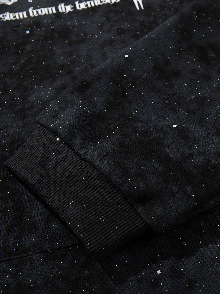 Upgrade your streetwear collection with this fleece-lined oversized hoodie, featuring a unique galaxy-inspired splatter print. Crafted from 100% polyester, it offers durability, breathable comfort, and easy maintenance. The cozy fleece interior keeps you warm while ensuring all-day comfort, making it perfect for casual outings, lounging, or layering in colder seasons. Available in black and gray with sizes ranging from S to XL, this hoodie combines trendy street style with practical everyday wear. A must-have addition to any modern wardrobe and an excellent gift choice for fashion lovers.