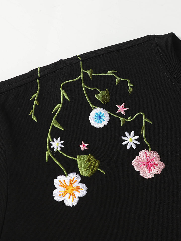 🌼 Artistic Floral Embroidery – Features delicately embroidered flowers and vines, adding a whimsical and nature-inspired flair to your look.