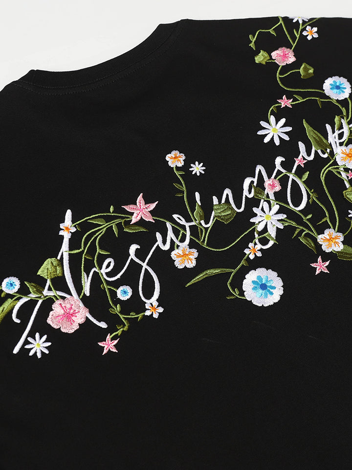 Upgrade your everyday style with this oversized T-shirt, designed with elegant floral embroidery and a clean silhouette. The minimal yet eye-catching artwork across the chest and shoulder adds personality without overwhelming your outfit. Whether you're heading out, relaxing at home, or mixing it with your favorite streetwear layers, this tee provides breathable comfort and a distinctive artistic edge. A versatile and thoughtful addition to any fashion-forward wardrobe.