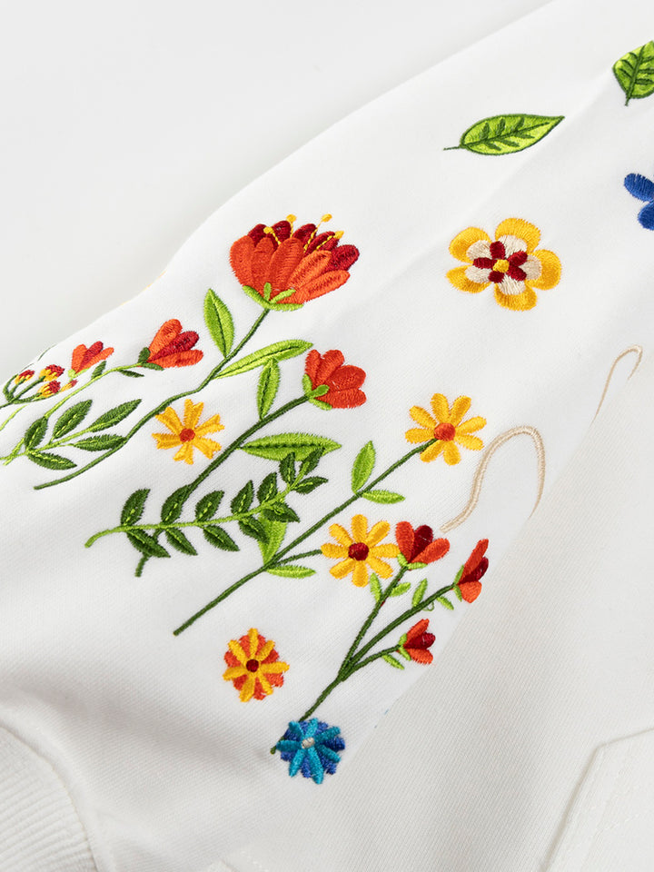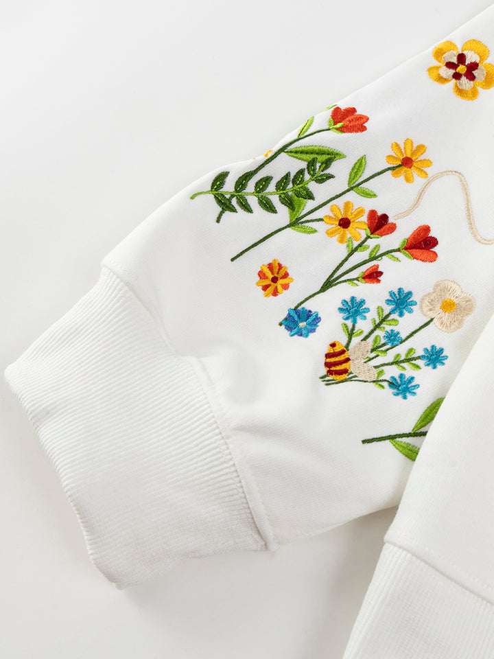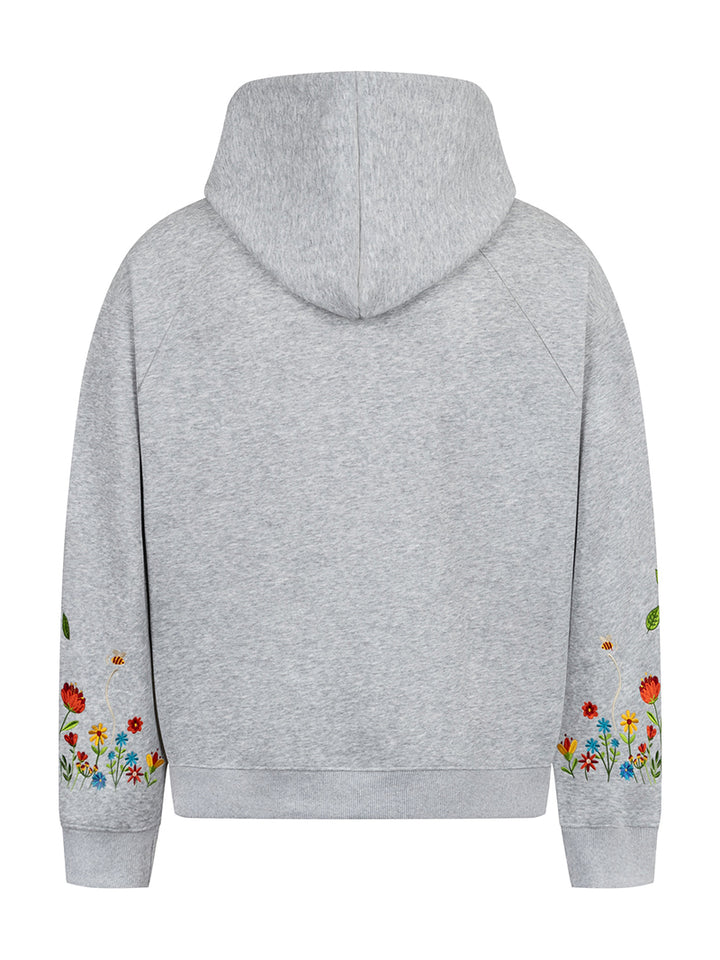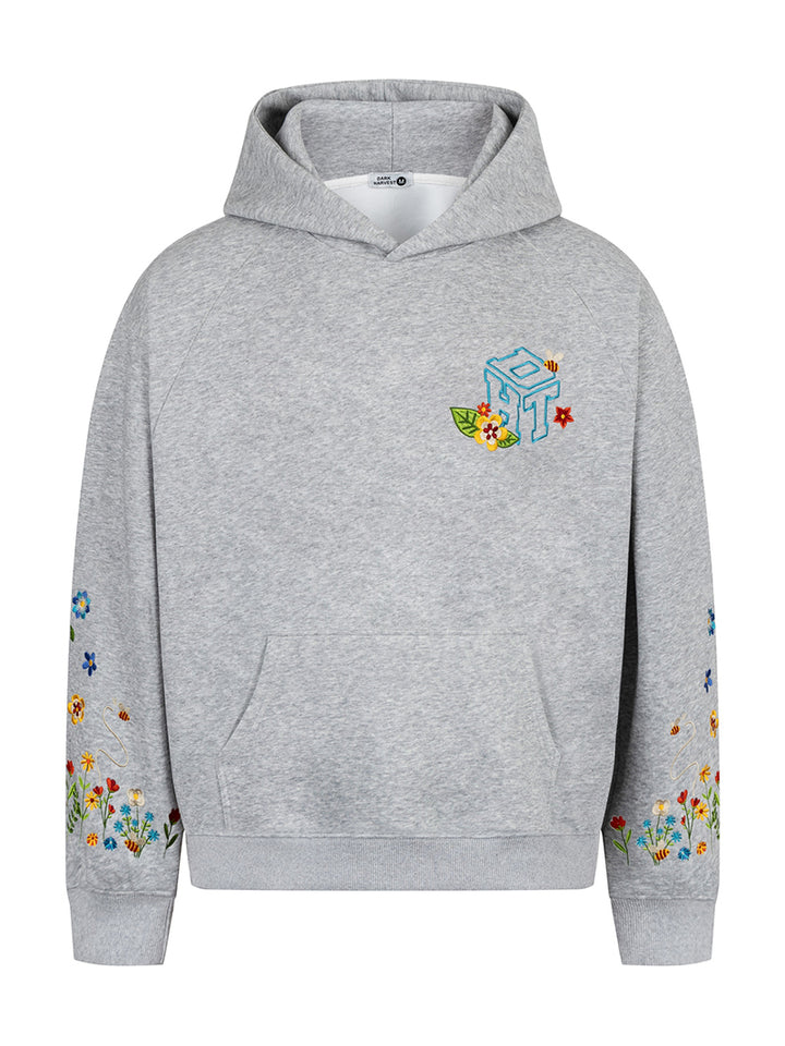 Elevate your casual wardrobe with this unique floral embroidered hoodie, combining cozy comfort with artistic flair. Designed with playful bee and flower motifs along the sleeves and a 3D-style chest detail, this hoodie stands out in any crowd. Crafted from a premium cotton-polyester blend with a full polyester lining, it offers soft, breathable wear that lasts. Available in three versatile colors—black, white, and heather gray—this hoodie fits effortlessly into any modern, creative wardrobe. Perfect for daily wear, gifting, or expressing your love of nature in streetwear style.