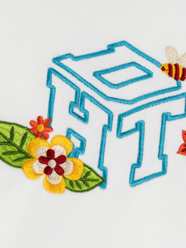 🌼 Nature-Inspired Embroidery – Features vibrant floral and bee motifs with a 3D-style chest graphic for a whimsical, eye-catching look.
