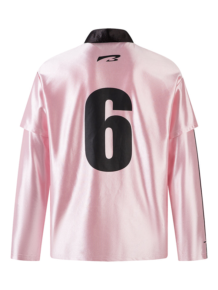 Elevate your casual wardrobe with this glossy long sleeve T-shirt, made from stretch crystal satin for a smooth, lustrous finish and comfortable wear. Featuring a relaxed fit and bold number graphics on both front and back, this top blends sportswear influence with modern street style. The medium-weight 230g fabric makes it perfect for spring, autumn, or layering in cooler months. Choose from three standout colors—white, pink, or black—and enjoy a look that’s bold, breathable, and effortlessly stylish. Great for fashion lovers seeking something unique and expressive.