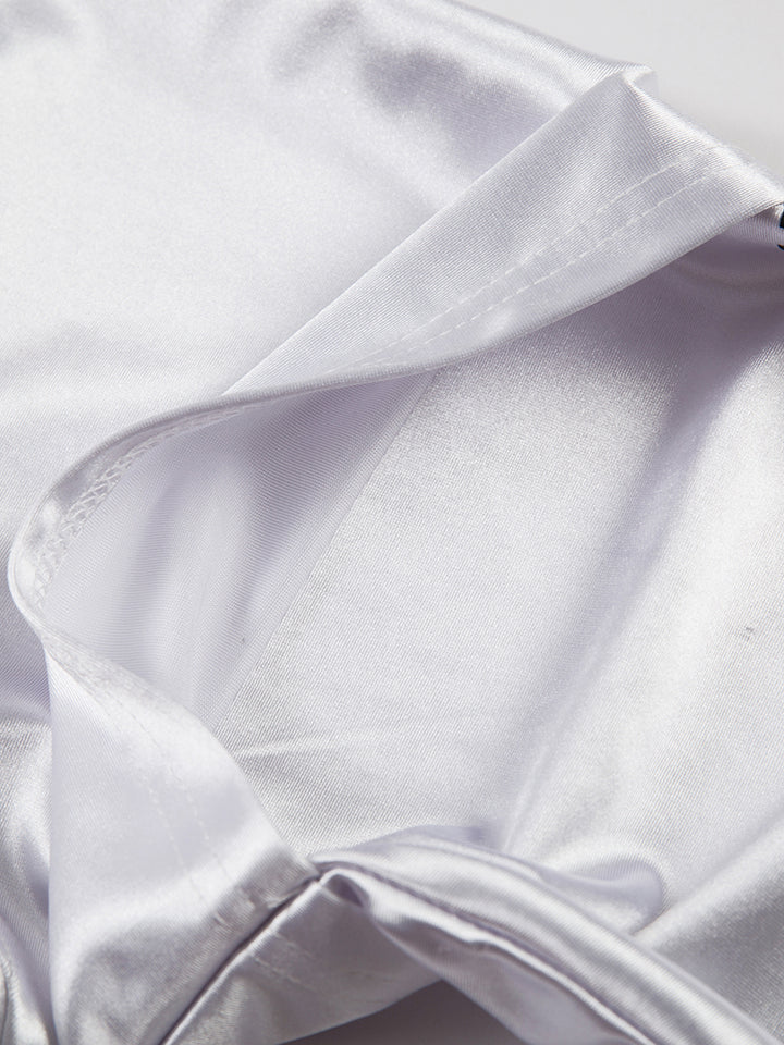✨ Glossy Crystal Satin Fabric – Crafted from high-quality stretch satin (95% polyester, 5% spandex), this shirt offers a silky smooth finish with a slight stretch for all-day comfort.