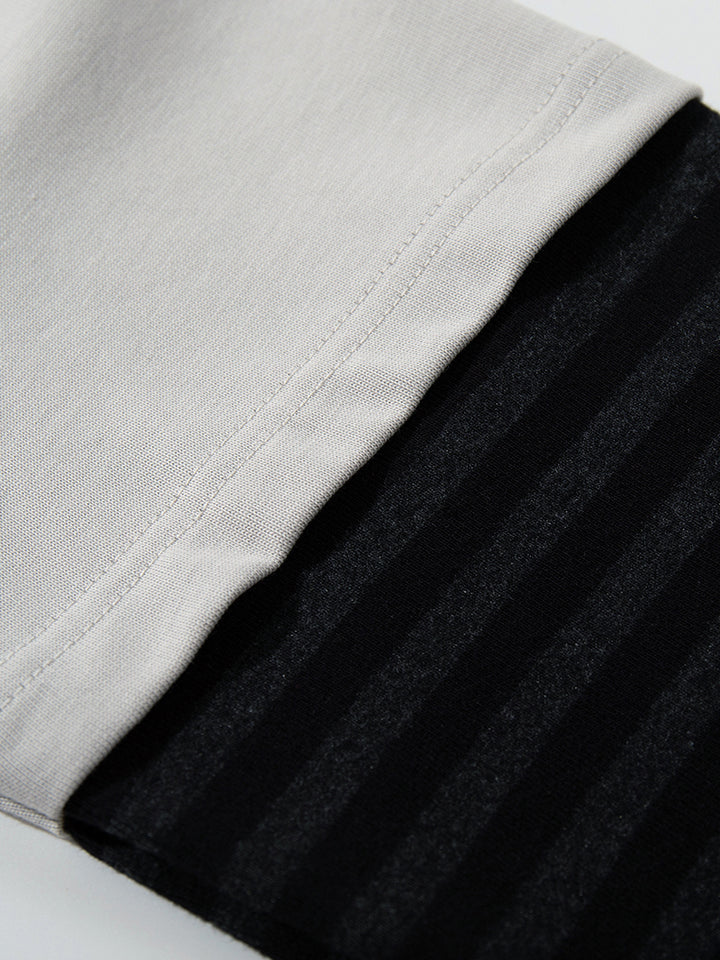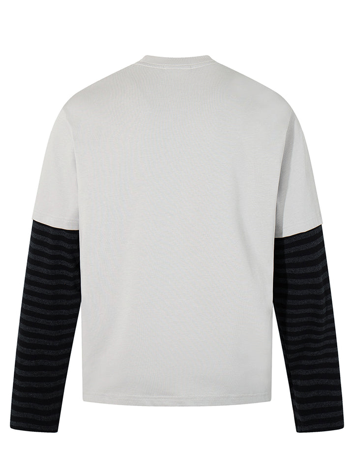 🧵 Layered Sleeve Design – Stylish contrast striped sleeves mimic a double-layer look for depth and bold street style.