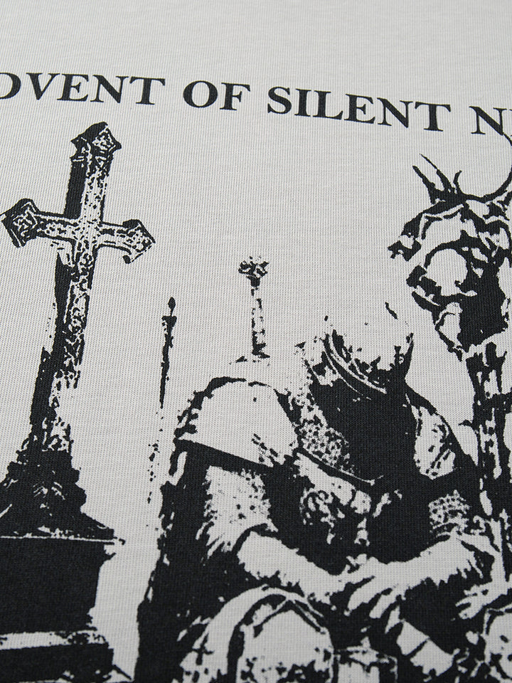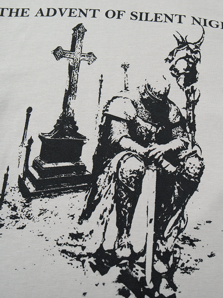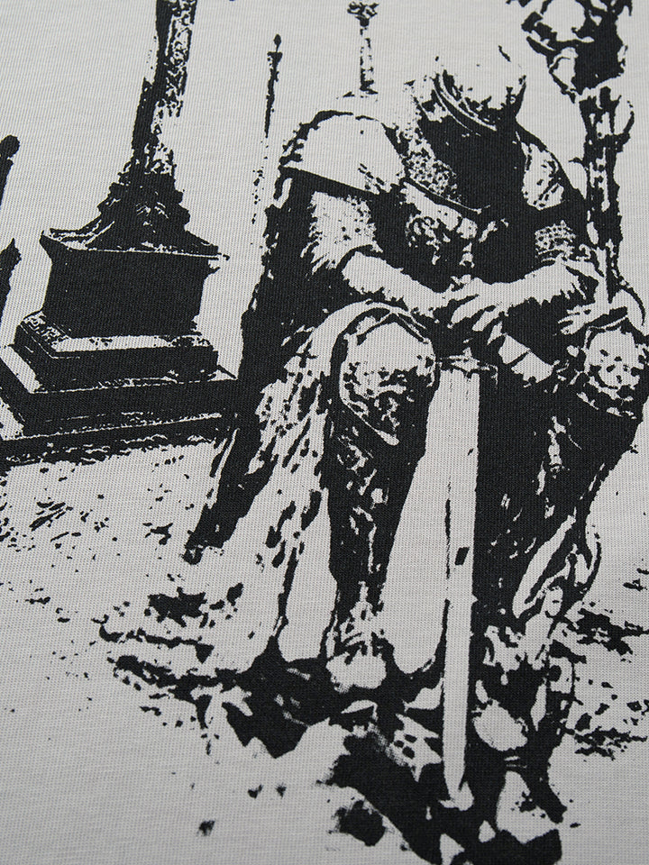 🛡 Gothic-Inspired Graphic – Features a moody medieval-themed illustration with dramatic artistic flair, adding edge to your streetwear collection.