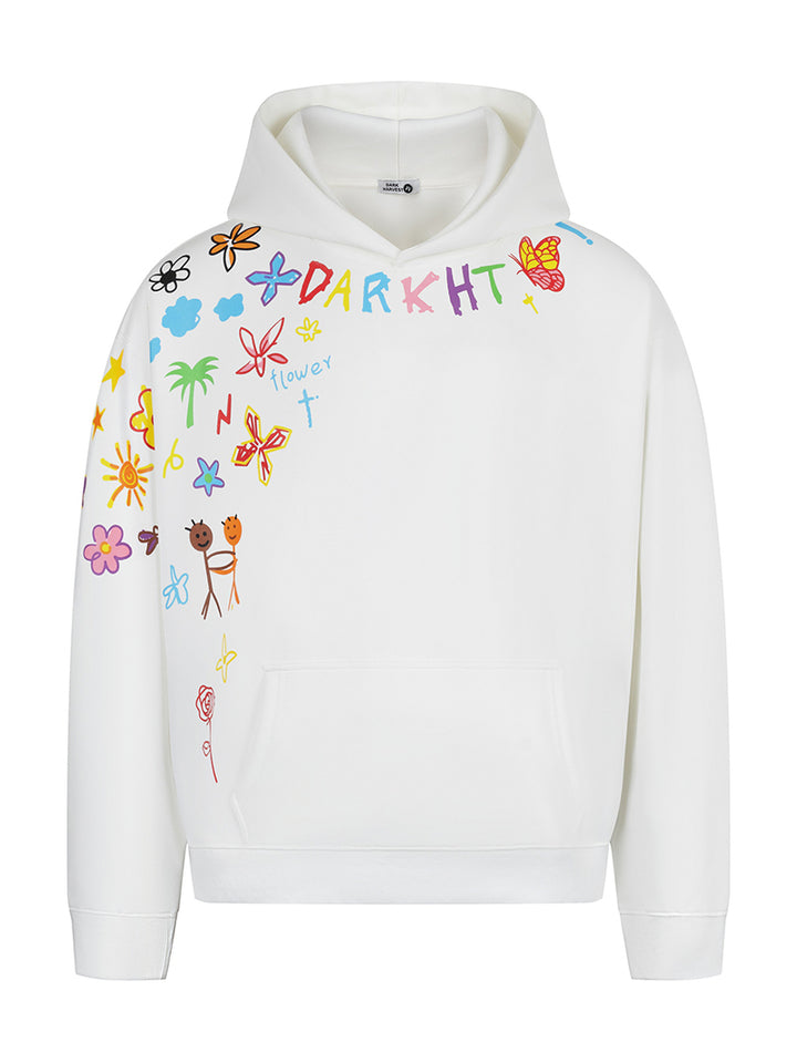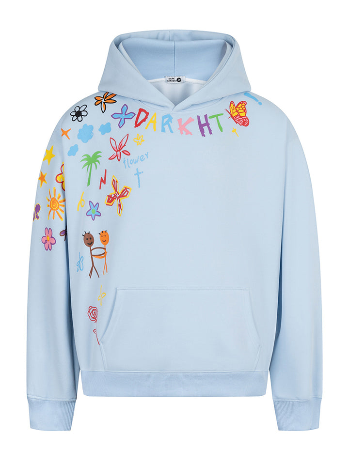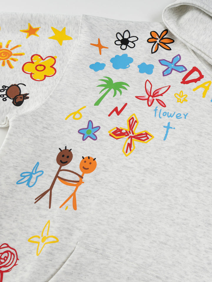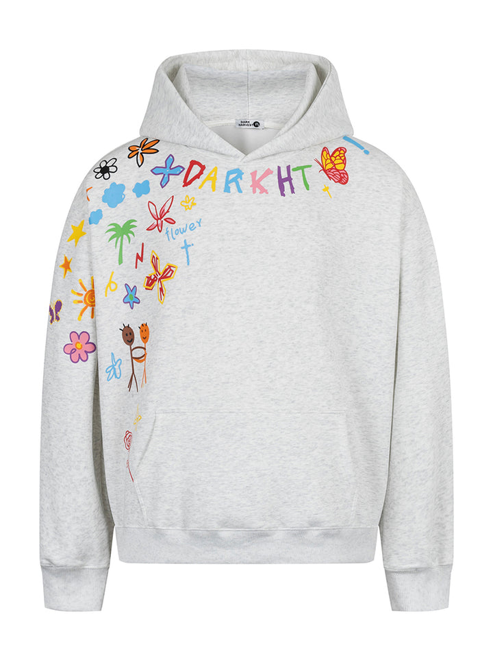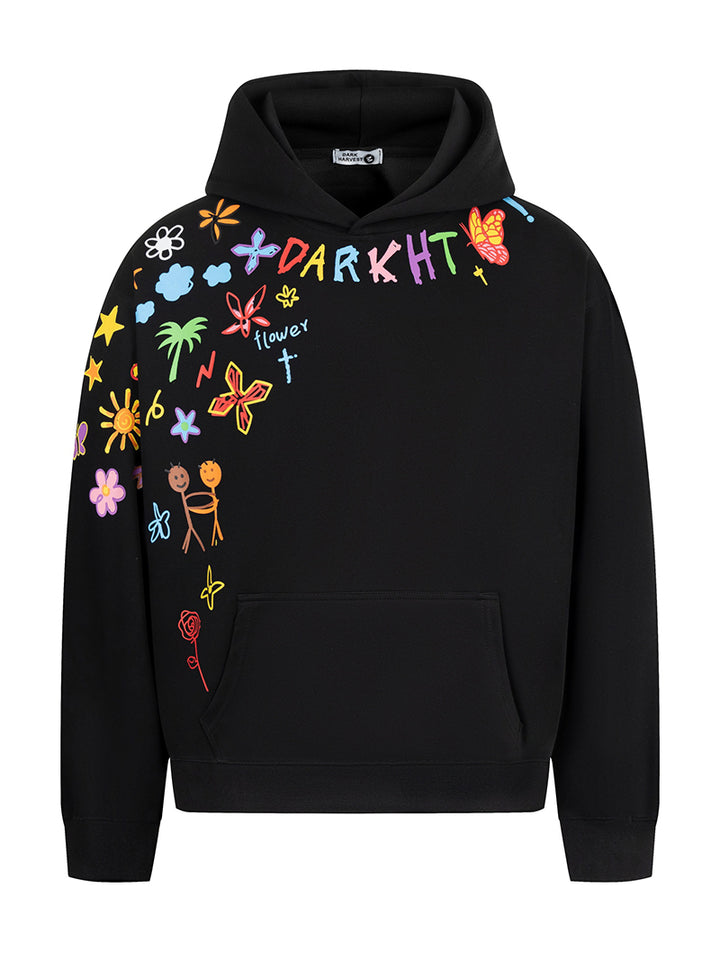 Add a splash of color and personality to your casual outfits with this oversized hoodie featuring a playful graffiti-style print. The artistic design combines joyful hand-drawn elements with bold colors, making it a standout piece for creative wardrobes. Made from a breathable cotton-polyester blend with a soft inner lining, this hoodie ensures lasting comfort throughout the day. Ideal for casual wear, streetwear styling, or as a thoughtful gift for those who love expressive fashion, this hoodie is your go-to for comfort and creativity.