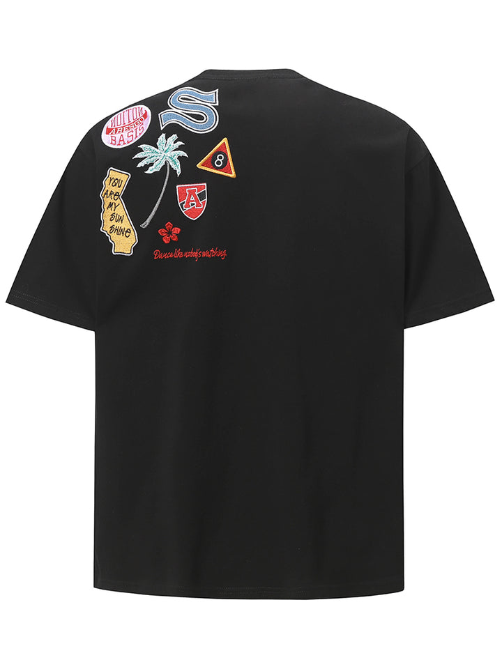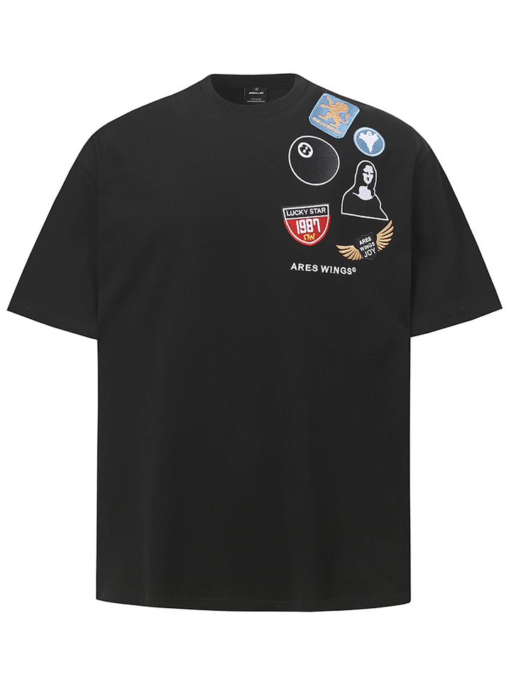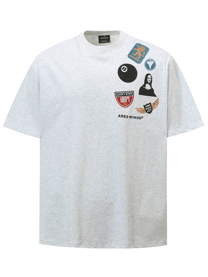 Elevate your streetwear game with this bold oversized T-shirt, styled with an eclectic mix of graphic patches that lend an urban and creative flair. Designed with a relaxed fit and made from breathable cotton, this tee ensures all-day comfort whether you're lounging, heading out with friends, or making a statement on the go. A perfect blend of comfort and individuality, this graphic tee is a versatile addition to any modern wardrobe.