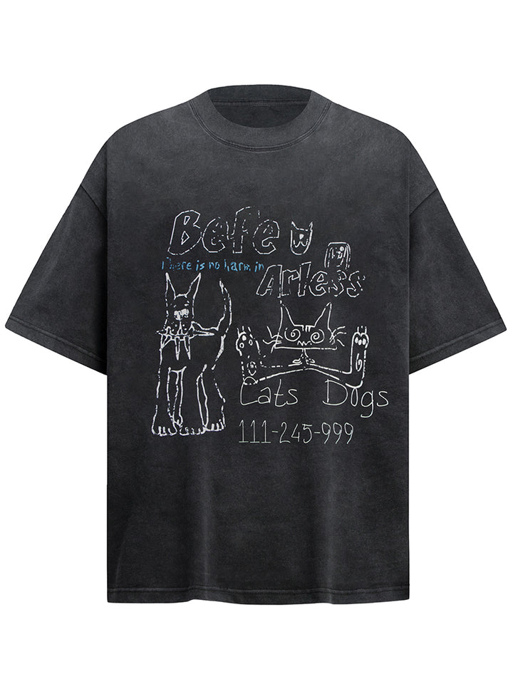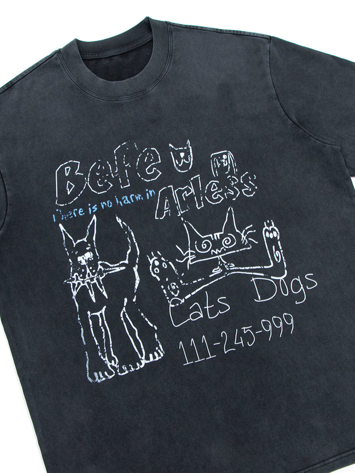 Make a bold statement with this oversized unisex graphic tee featuring a whimsical, hand-drawn design of cats and dogs. With its laid-back streetwear appeal and vintage washed finish, this tee effortlessly blends comfort with creativity. Perfect for casual outings, art festivals, or simply lounging in style. Available in two versatile colors, it's a go-to piece for anyone who loves pets and self-expression.