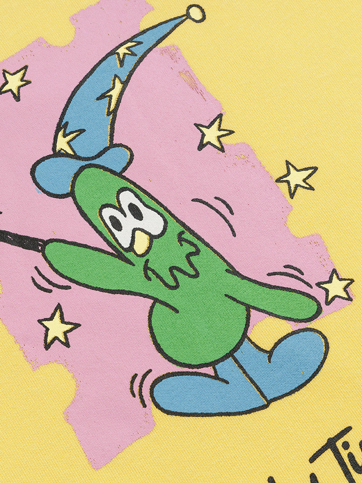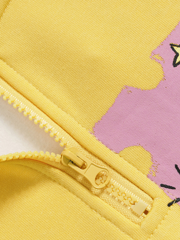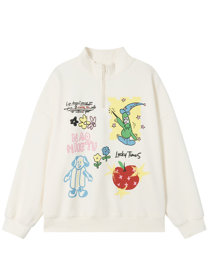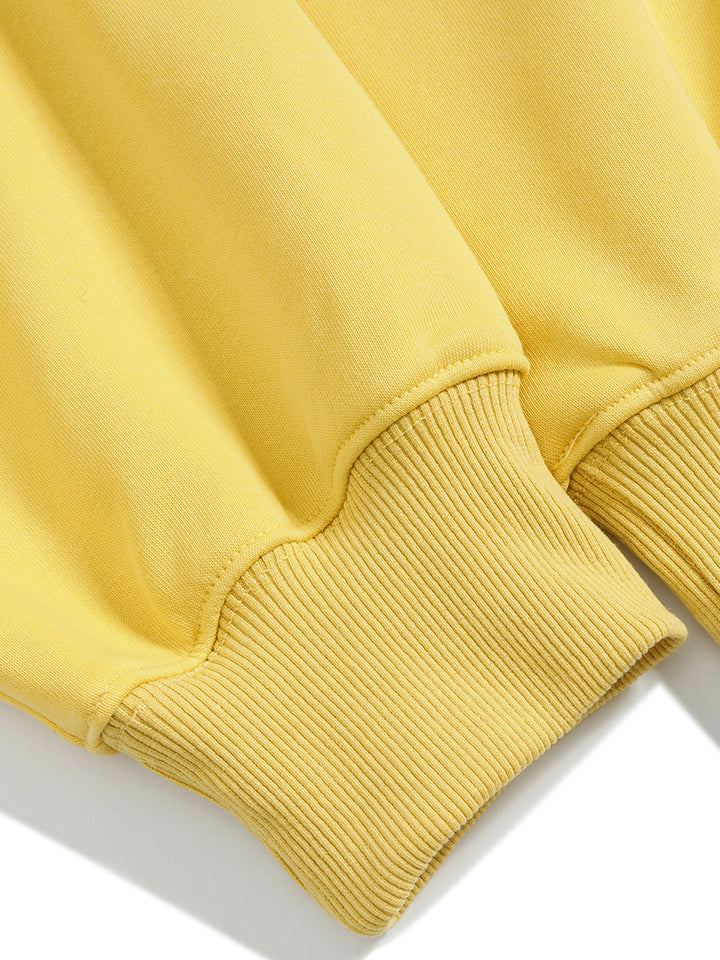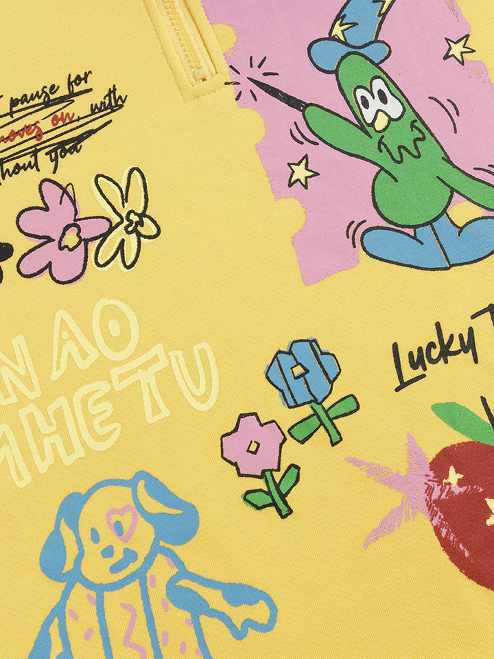 Add a touch of creativity to your everyday look with this half-zip cartoon graphic fleece sweatshirt. Designed with playful, hand-drawn-style prints and made from a premium cotton-polyester blend (65% cotton, 35% polyester), it provides both comfort and durability. The soft fleece lining offers gentle warmth, making it perfect for autumn and winter wear. Its oversized silhouette delivers a relaxed fit for lounging, daily outings, or layering in your streetwear outfits. Available in Apricot and Yellow, this pullover brings a youthful, artistic vibe to any wardrobe — an ideal gift for anyone who loves cozy, stylish fashion.