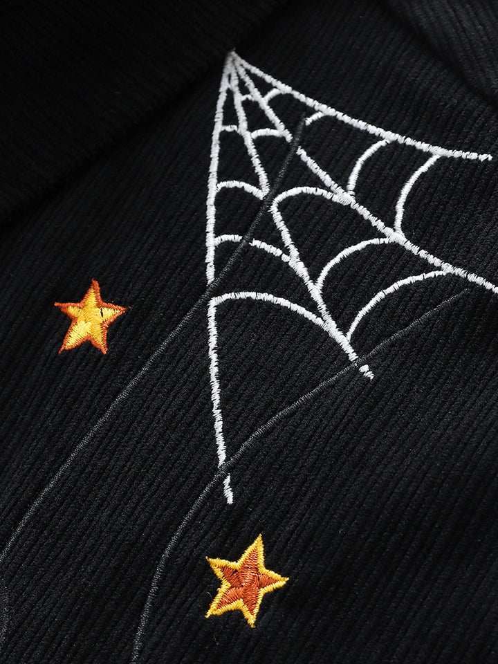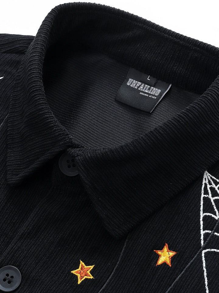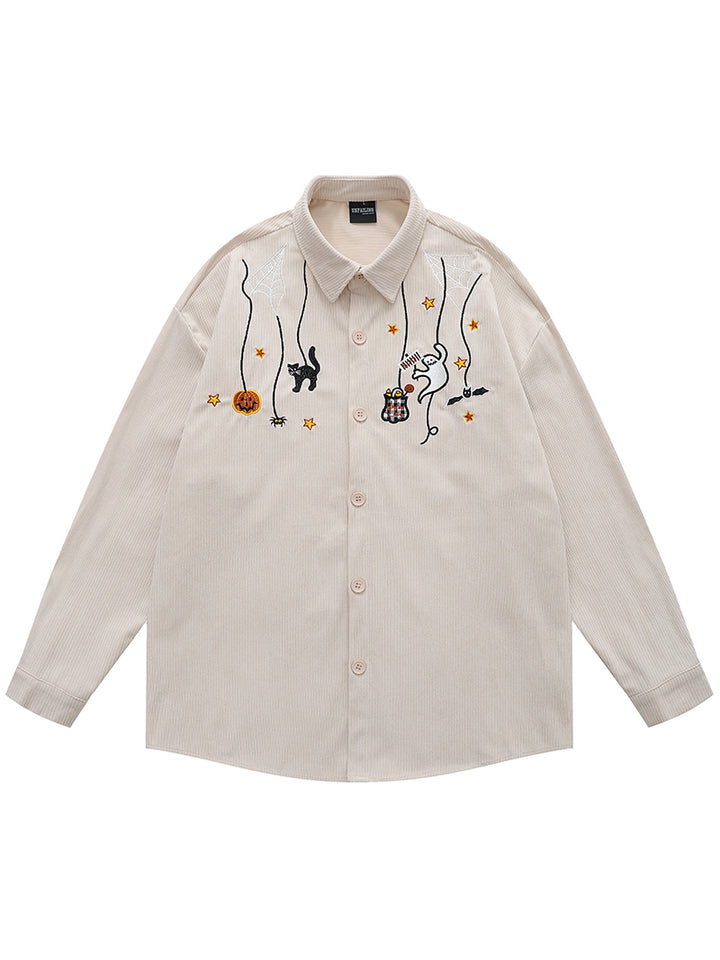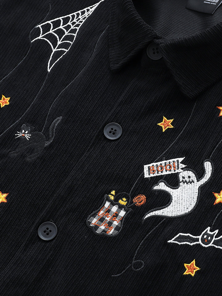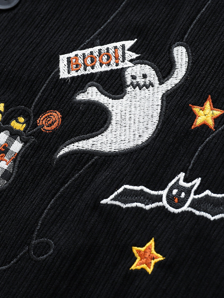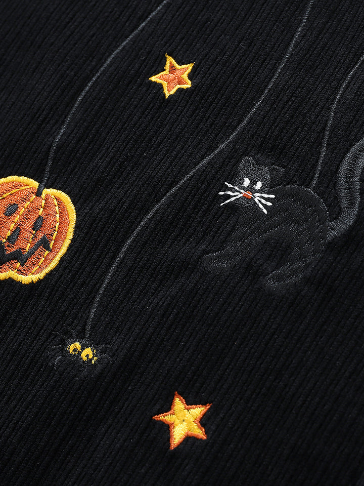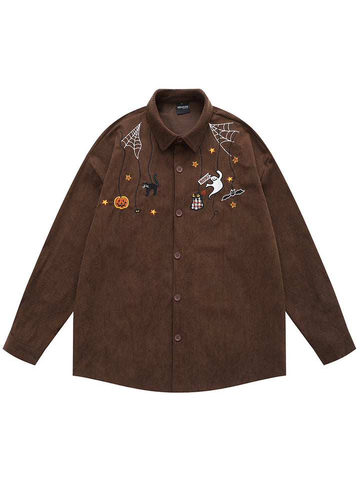 Refresh your autumn wardrobe with this standout Halloween embroidered corduroy shirt. Decorated with festive details including pumpkins, ghosts, bats, and spider webs, it perfectly captures the playful spirit of the season. Crafted from 100% polyester corduroy, this shirt offers a soft touch, breathable comfort, and long-lasting durability. The oversized fit ensures relaxed styling, making it ideal for layering or wearing on its own. Available in three versatile colors—black, apricot, and brown—and sizes M, L, and XL, this shirt is a must-have for Halloween parties, seasonal gatherings, or adding a unique touch to your everyday casualwear.