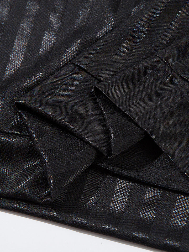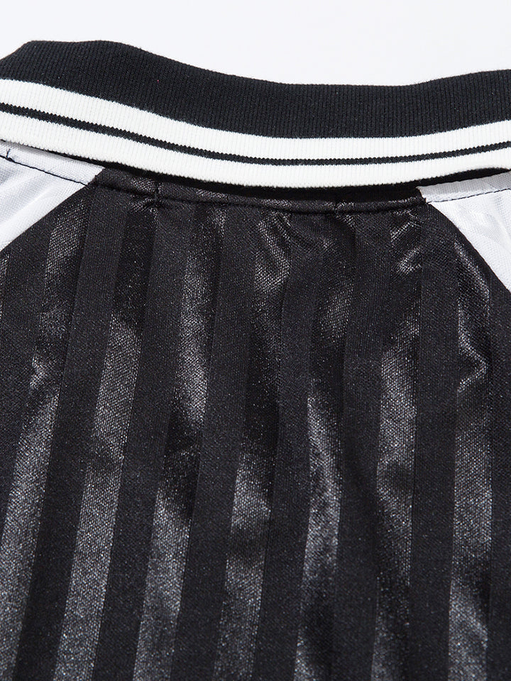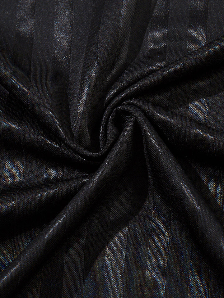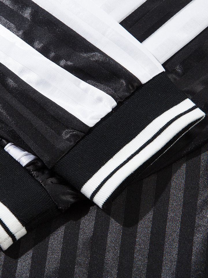 ✨ Jacquard Satin Fabric – Made from 100% polyester with a luxurious sheen and woven vertical stripe texture for a refined streetwear edge.