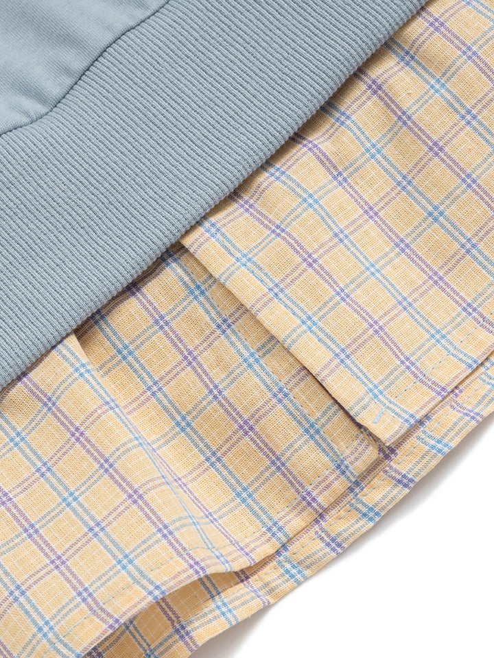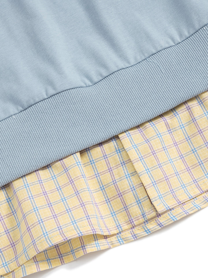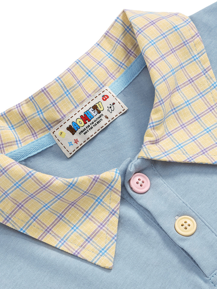 🟨 Plaid Shirt Collar Detail – Adds a preppy layered look with soft pastel plaid for a stylish twist on a basic tee.