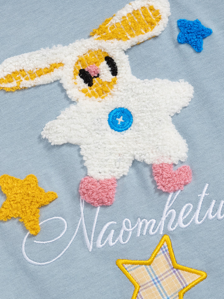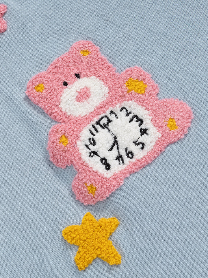 🧸 Cute Cartoon Embroidery – Features adorable teddy bear, bunny, and star patches for a fun, expressive touch.