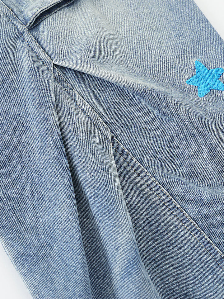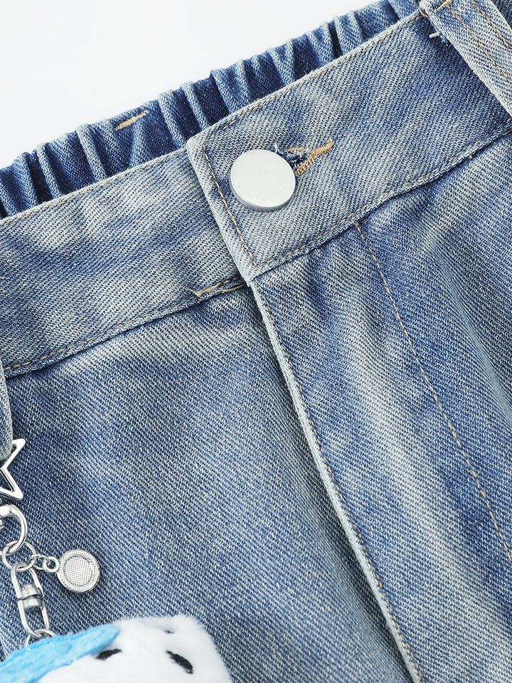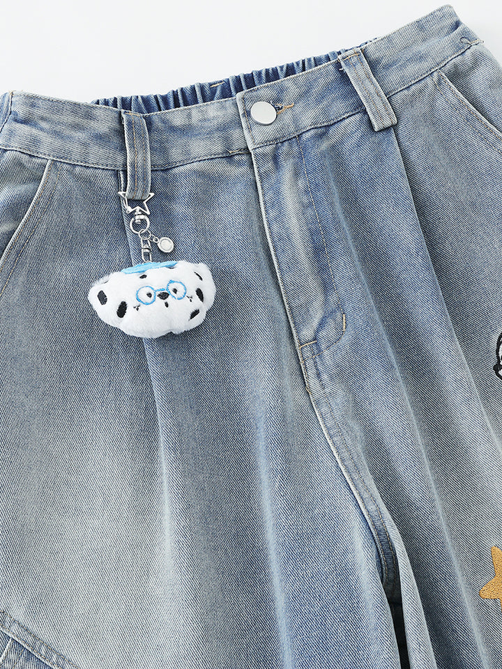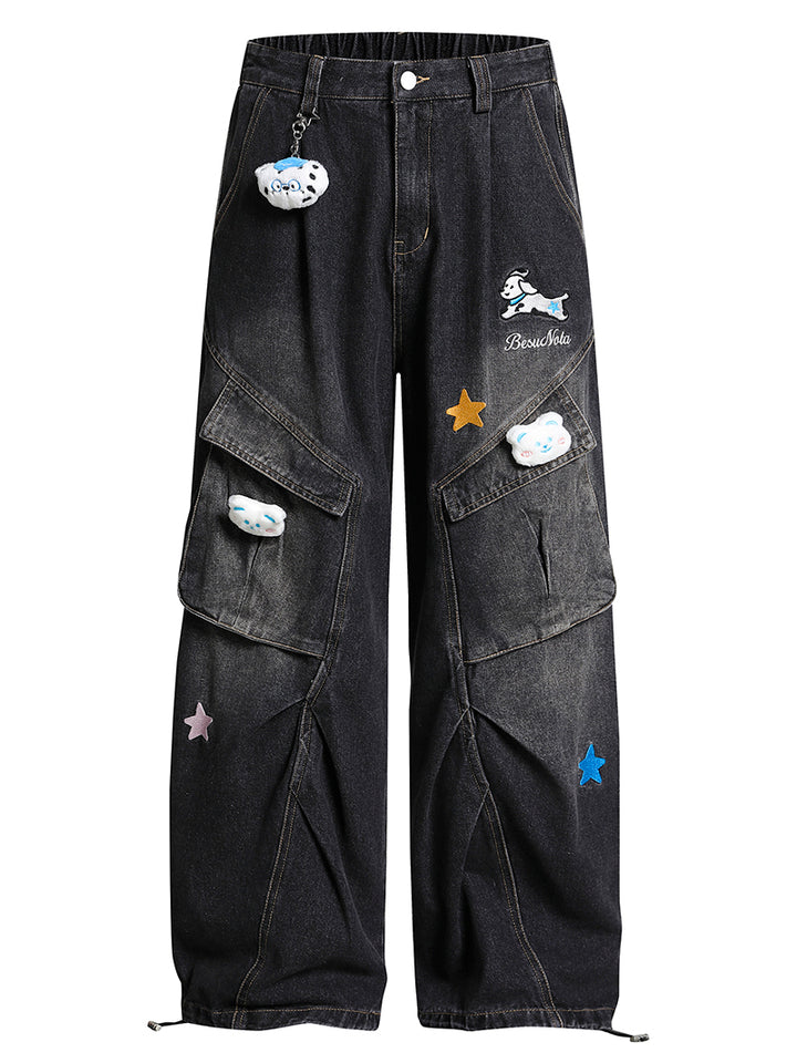 Refresh your everyday wardrobe with these playful wide-leg cargo jeans, available in blue and black. Designed with cute cartoon-style patches, star accents, and a relaxed oversized silhouette, they bring a cheerful and trendy streetwear vibe. The durable fabric blend of 80% cotton, 5% polyester, and 15% viscose ensures comfort for all-day wear, making them perfect for casual outings, lounging, or pairing with your favorite tops. With sizes ranging from S to XL, these jeans offer a stylish fit for various body types. A must-have addition to any modern streetwear collection, and a great gift for anyone who loves kawaii or Y2K-inspired fashion.