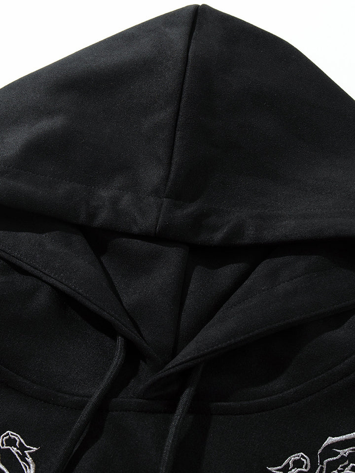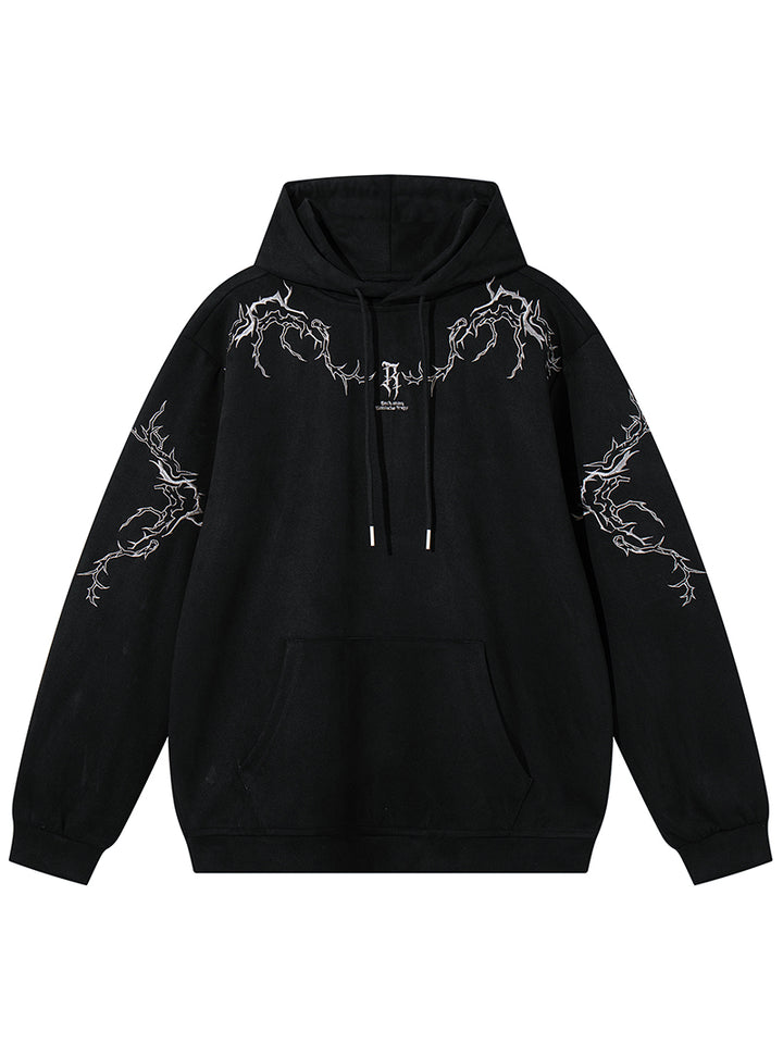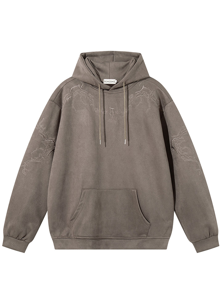 Upgrade your casual collection with this oversized embroidered hoodie, designed for those who love stylish and comfortable streetwear. Made from a premium faux suede fabric (90% polyester, 10% spandex), it delivers a soft touch, breathable comfort, and a refined texture that stands out from ordinary hoodies. The lightning-inspired embroidery across the chest and sleeves adds a bold urban vibe, while the relaxed oversized fit ensures ease of movement and a laid-back silhouette. Available in two versatile colors—black and brown—and a full range of sizes from S to XXL, this hoodie is perfect for layering, lounging, or stepping out in style. Finished with a practical kangaroo pocket, it combines functionality with fashion, making it a must-have piece for your wardrobe or a thoughtful gift for any streetwear fan.