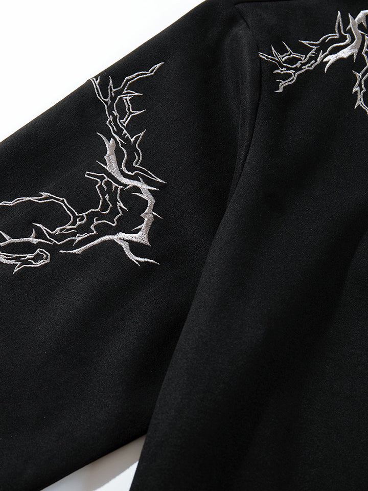 ⚡ Lightning Embroidery Design – Bold embroidery on the chest and sleeves adds a striking streetwear edge.