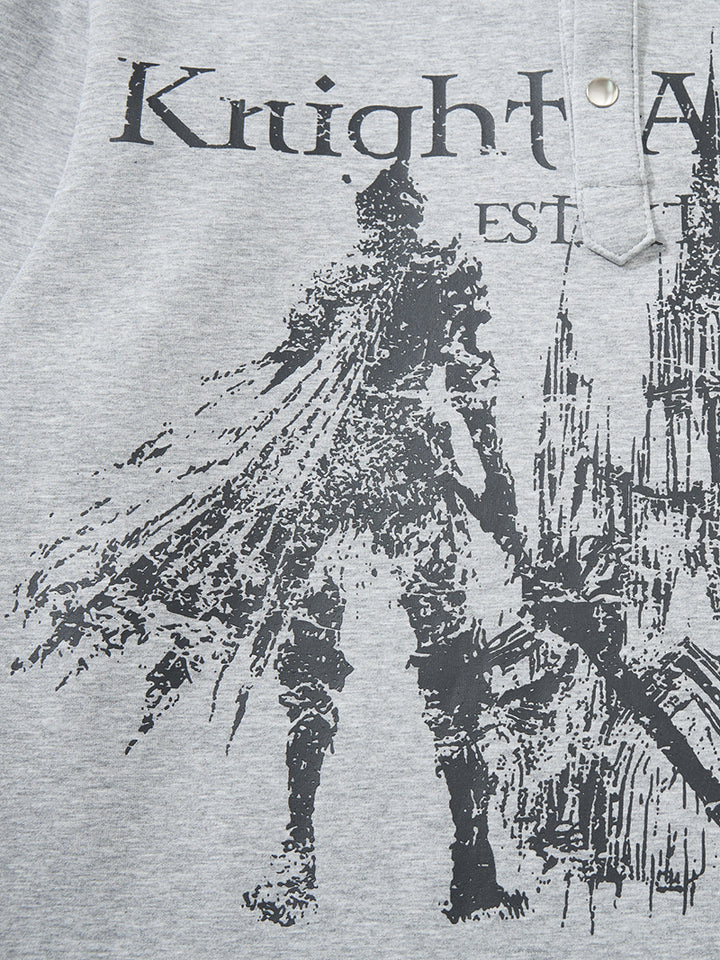 ⚔️ Fantasy Knight Graphic – Features an epic knight and gothic castle illustration for a bold and artistic look inspired by medieval themes.