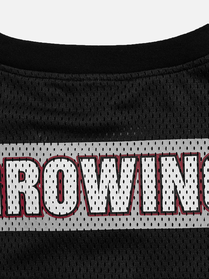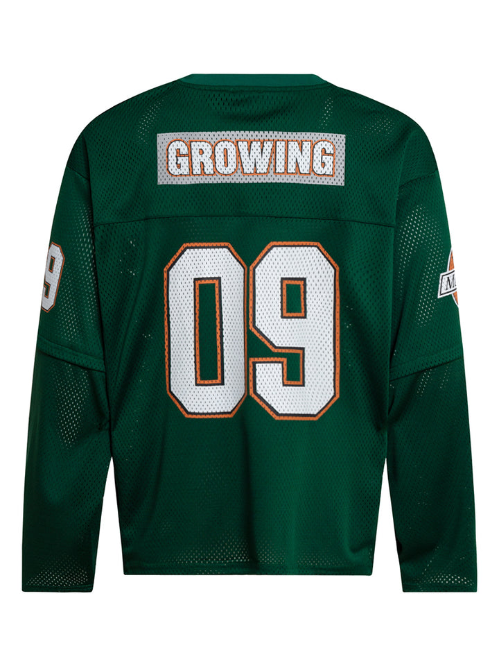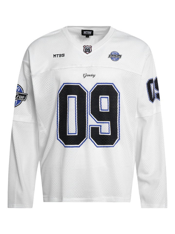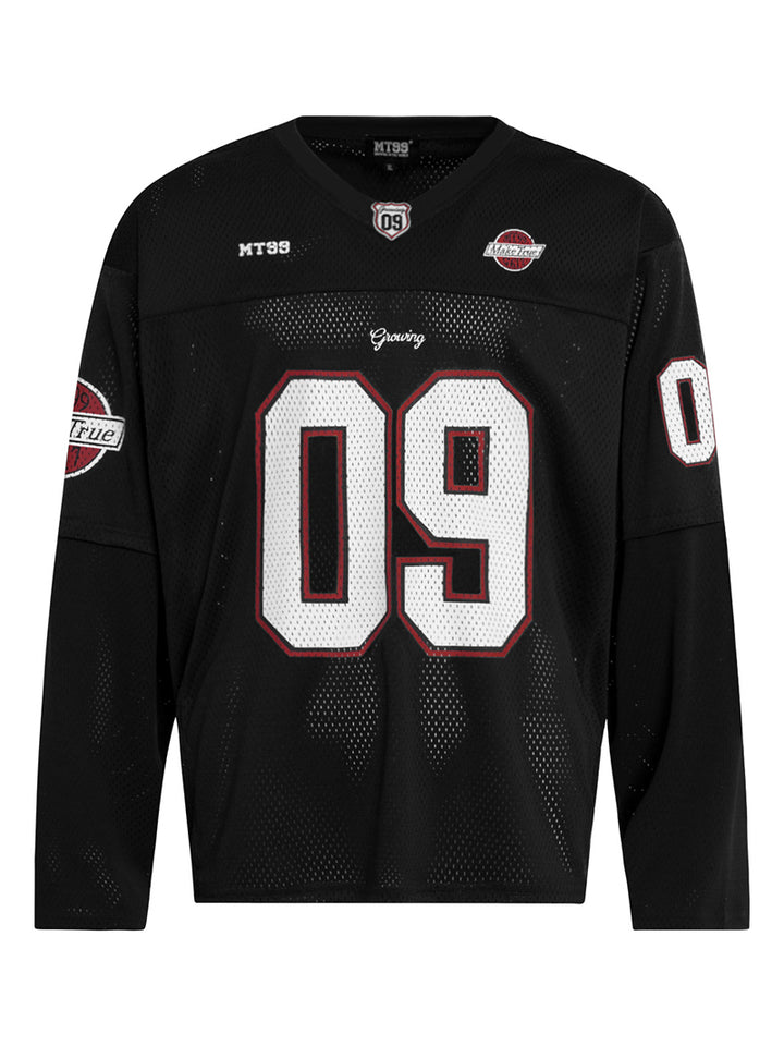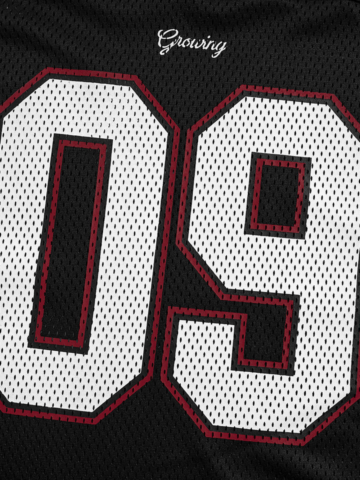 🏈 Vintage Jersey Design – Bold number print and athletic-inspired patches create a sporty retro look perfect for streetwear styling.